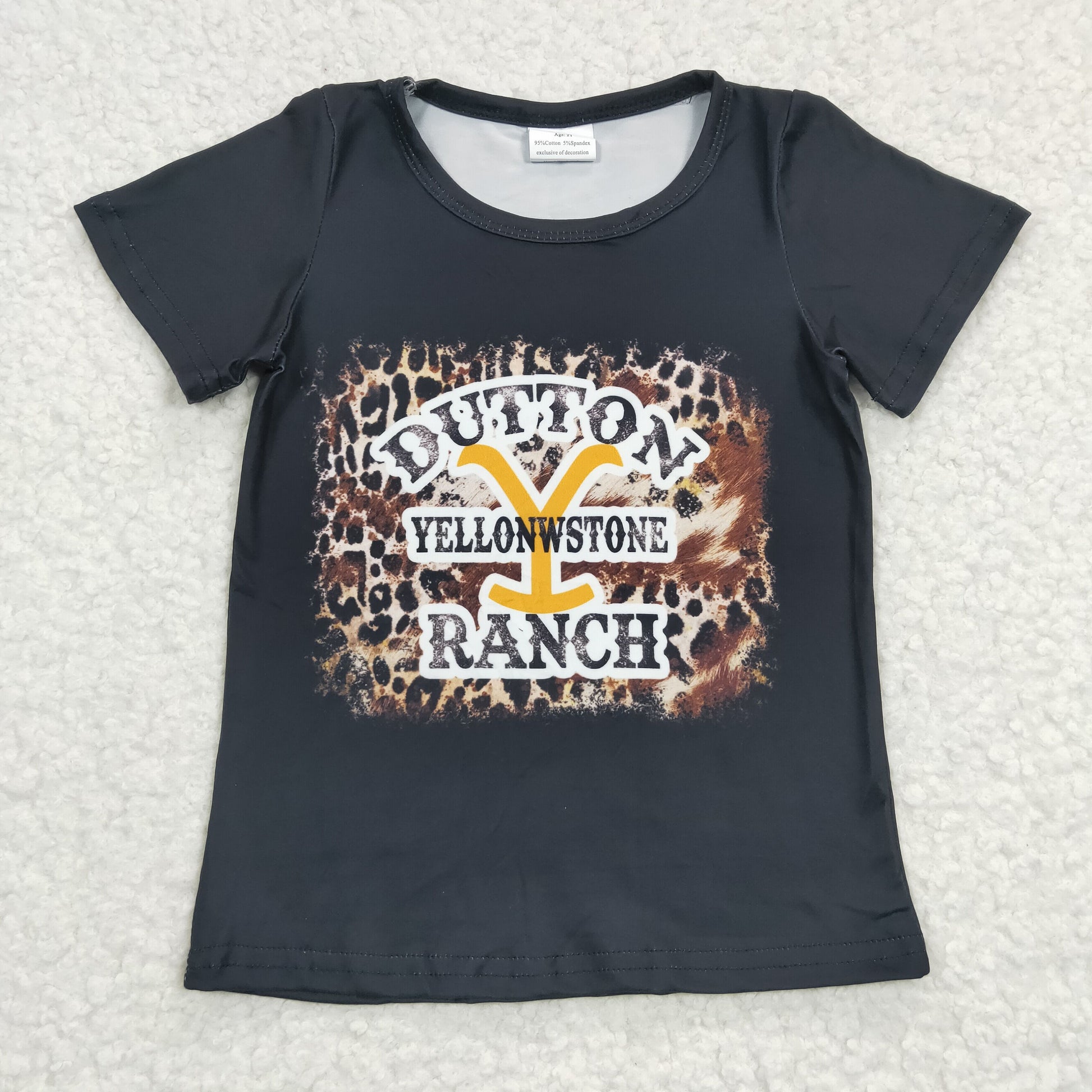 GT0177 Black Leopard Cowboy Ranch Western Girls Short Sleeve Top T-shirts