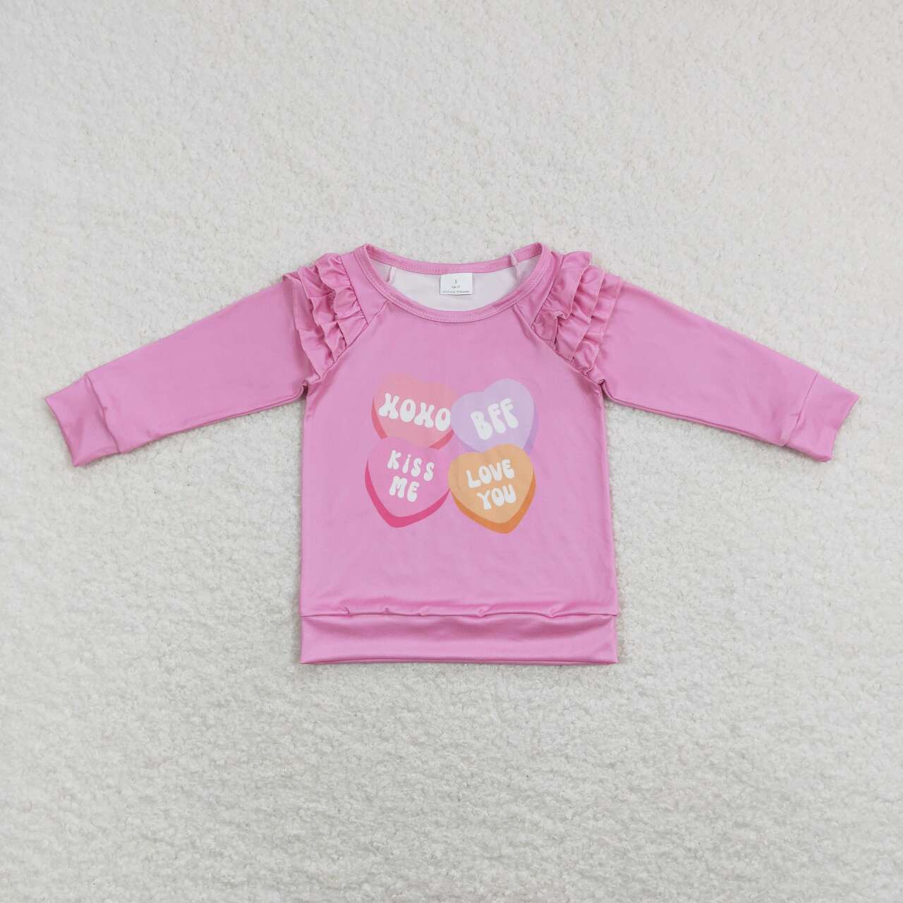 GT0425 Valentine Pink Love You Girls Long Sleeve Top T-shirts