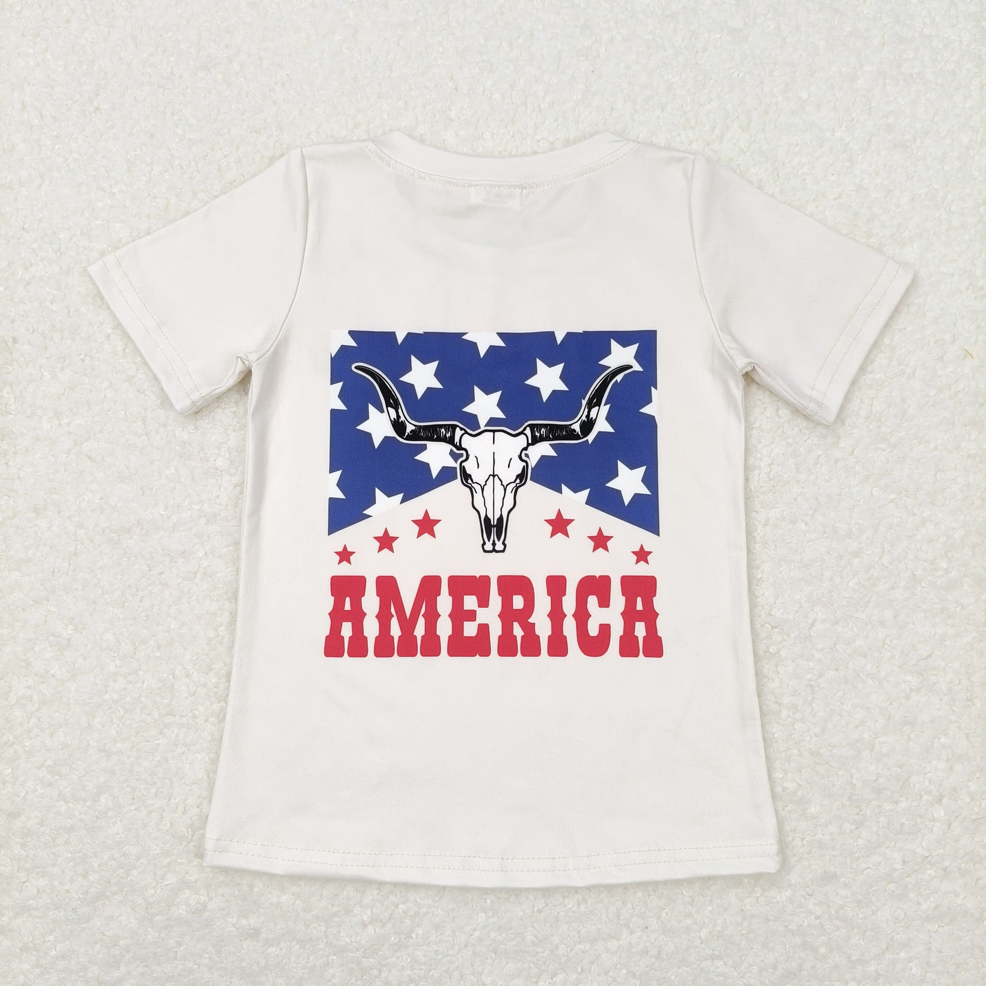 GT0465 america Star Alpine bull head beige short sleeve top children gym clothing