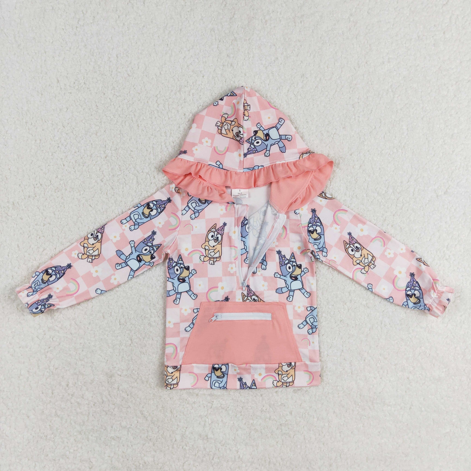 GT0633 NO MOQ bluey Rainbow floral plaid pink pocket lace zipper hooded long-sleeved top