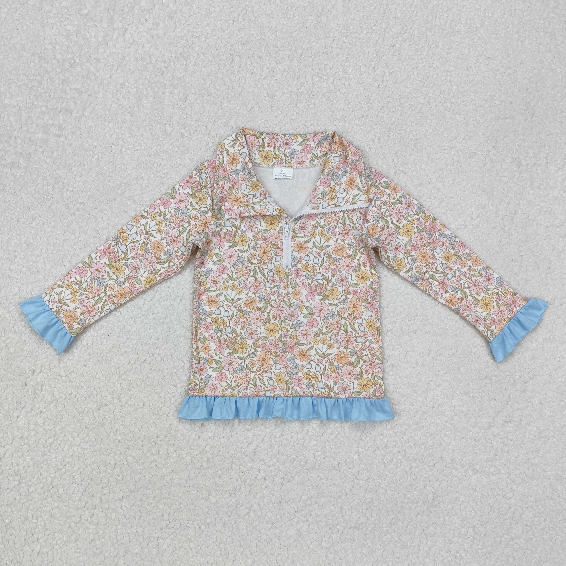 GT0722 Valentines girls boutique outfits Orange flower Blue Ruddle outfit Stand-up zipper shirts RTS202412