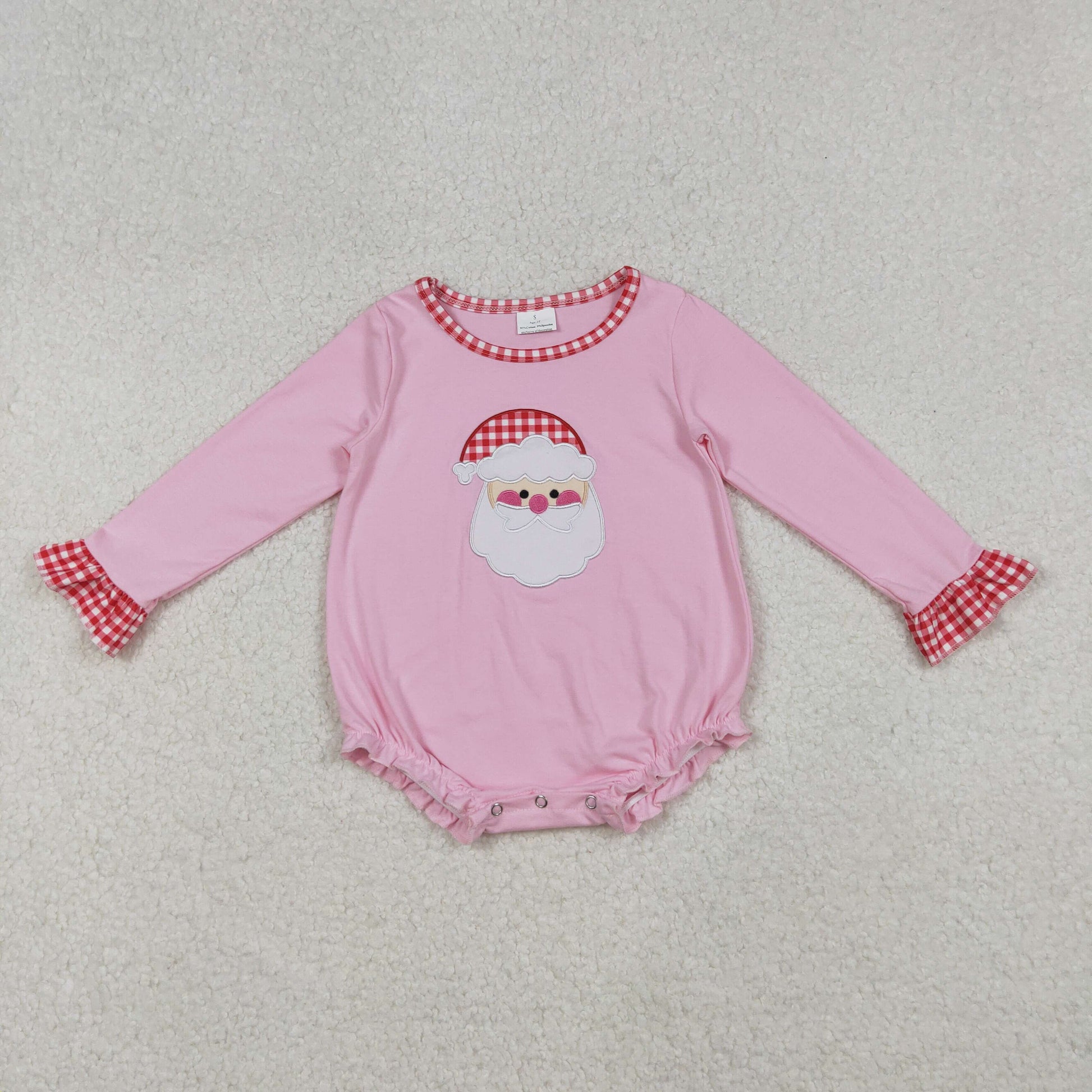 LR1733 Embroidered Red Plaid Ruffle Long Sleeves Christmas Girls Bubble Romper 202509