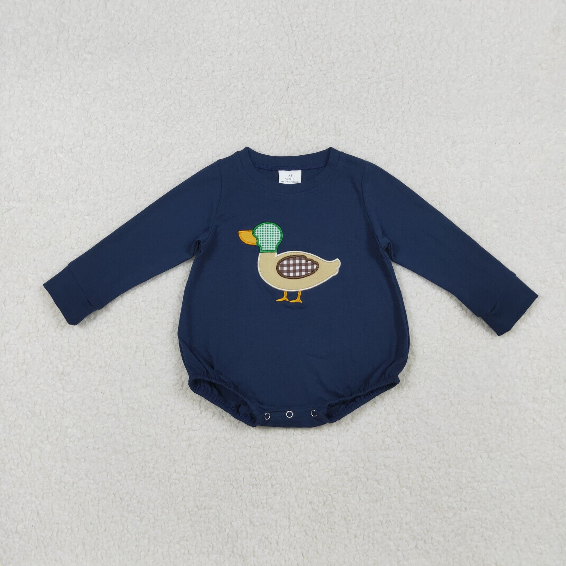 LR2436 Embroidered Duck Hunting Navy Blue Long Sleeve Boys Bubble Romper 202509 RTS