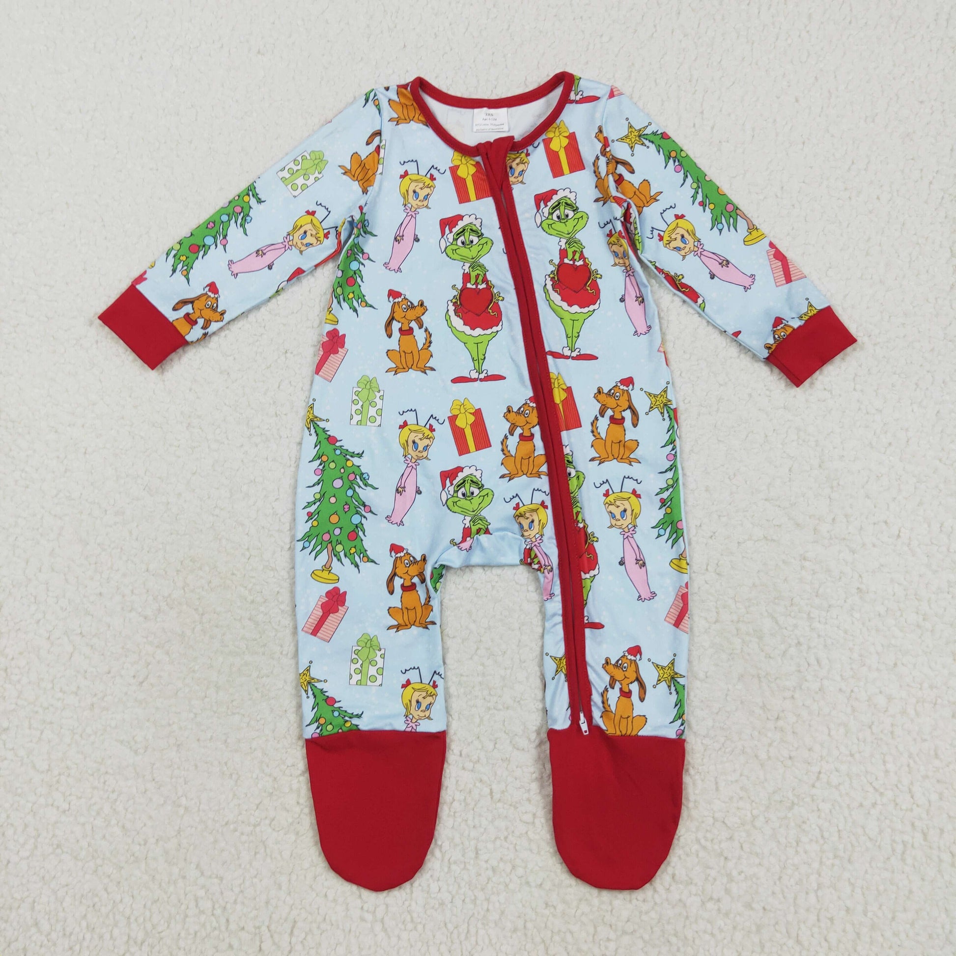 LR2478 Christmas Grinch Red Zippy Long Sleeve with Stocking Girls Romper 202508 RTS