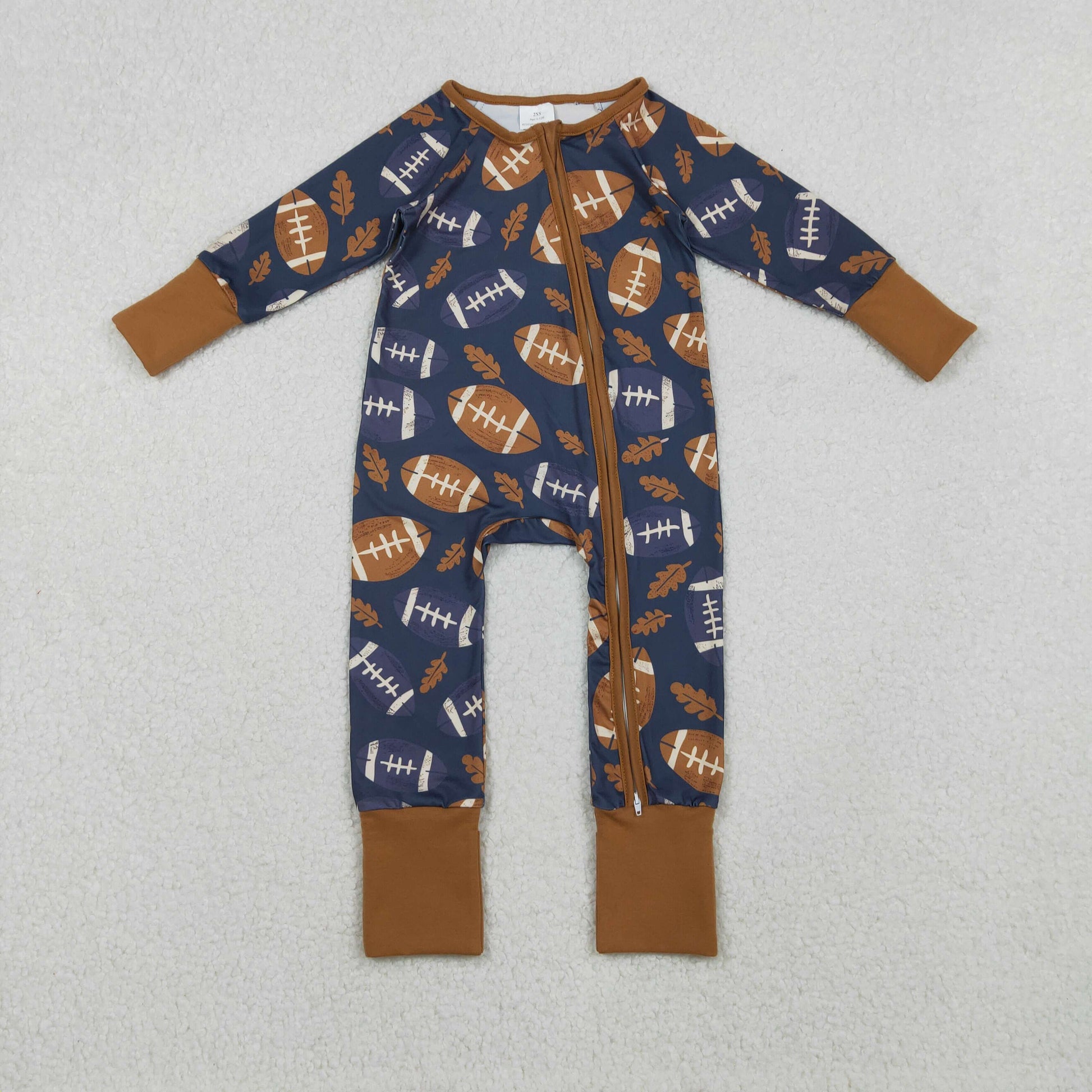 LR2543 Rugby Leaf Zippy Long Sleeve Boys Romper 202510 RTS