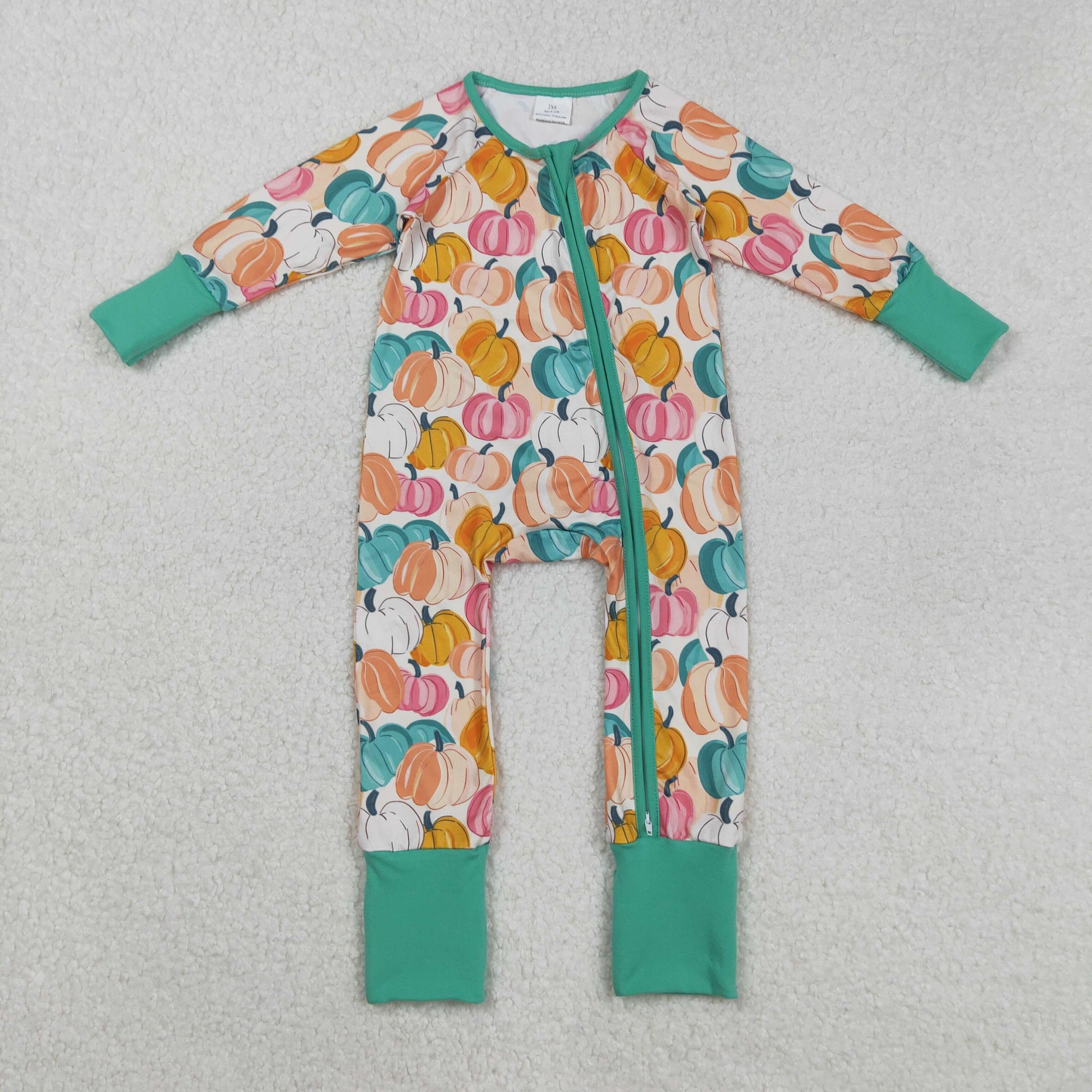 LR2552 Pumpkin Orange Green Zipper Long Sleeve Girls Romper 202508 RTS