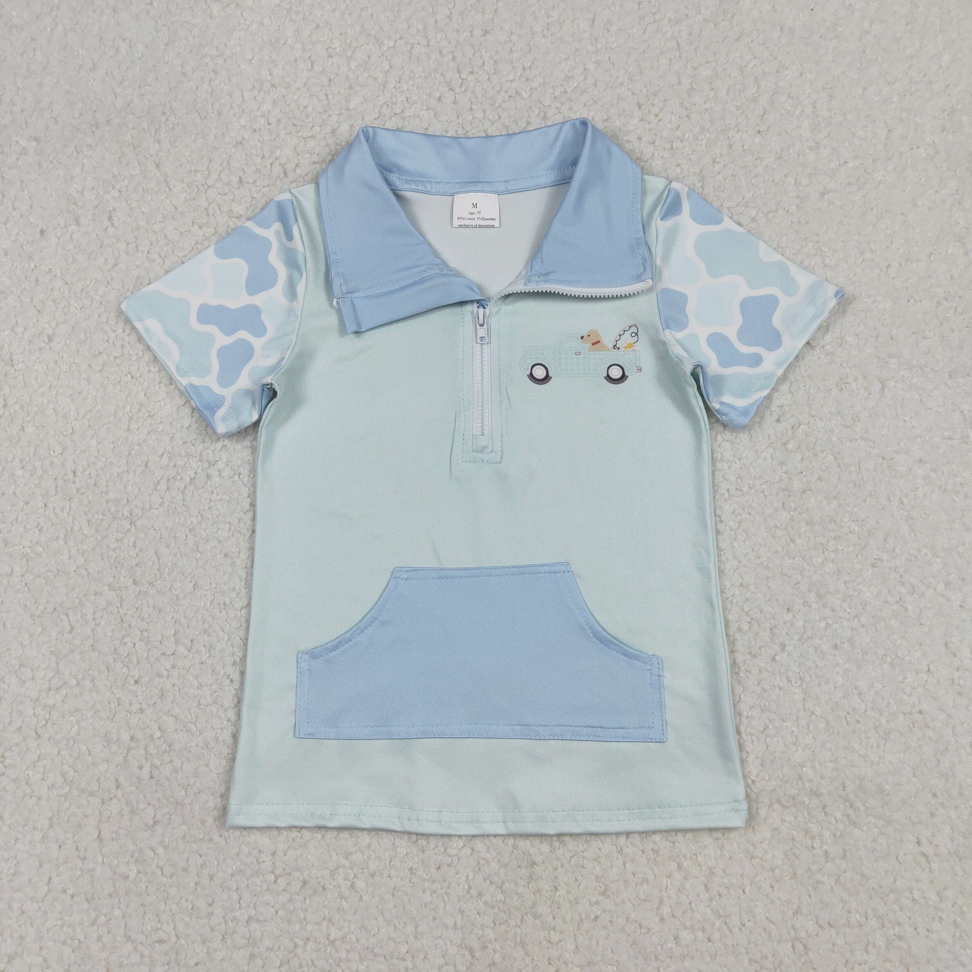 BT1534 Fish Puppy Blue Green Camouflage Pocket Zip Collar Short Sleeve Boys Top 202512 RTS