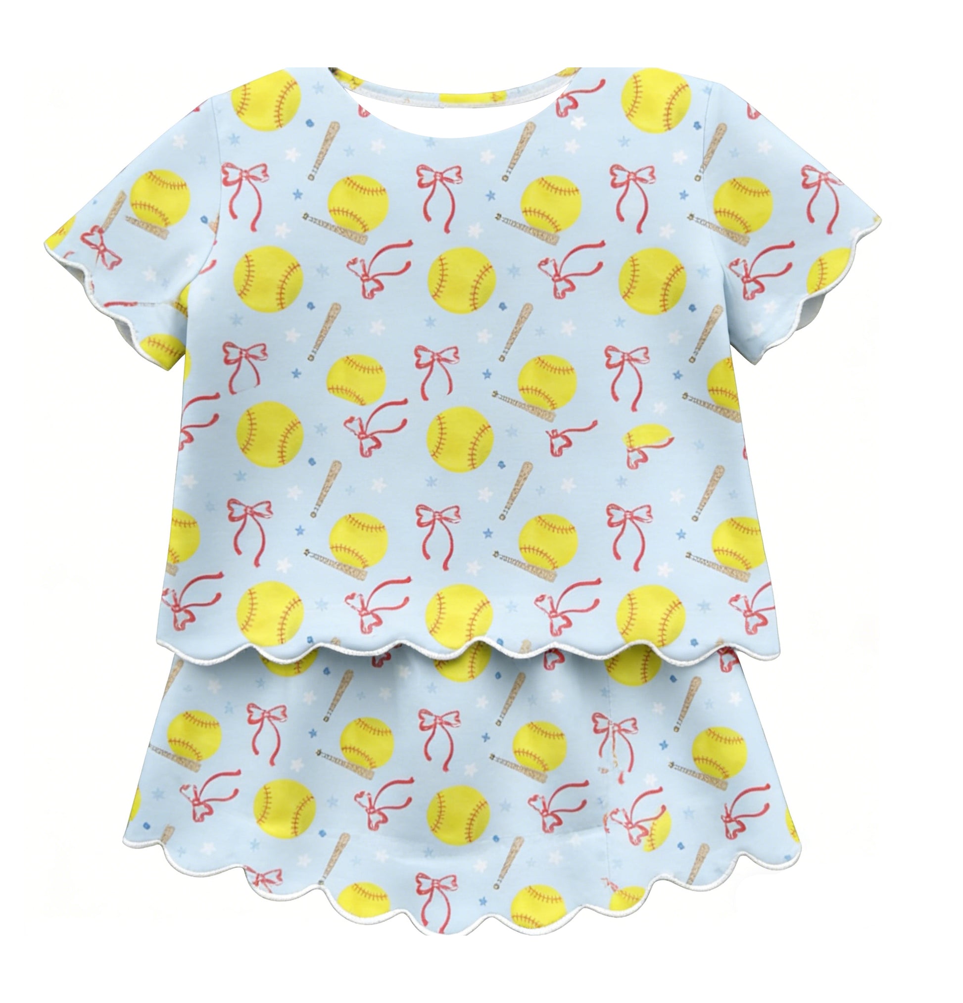 MOQ 5 PCS preorder GSD3655 Softball Star Bows Light Blue Short Sleeve Shorts Skirts Girls Yoga Sets 202601