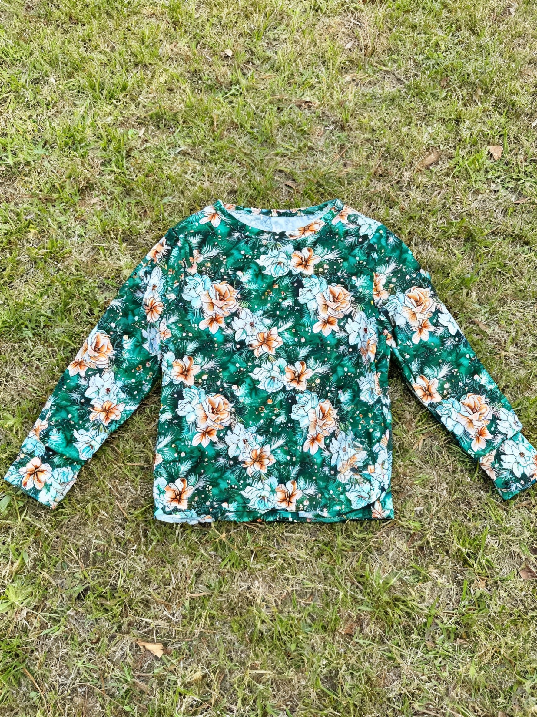 MOQ 5 PCS Preorder GT1465 Flower Green Long Sleeve Girls Tops 202511