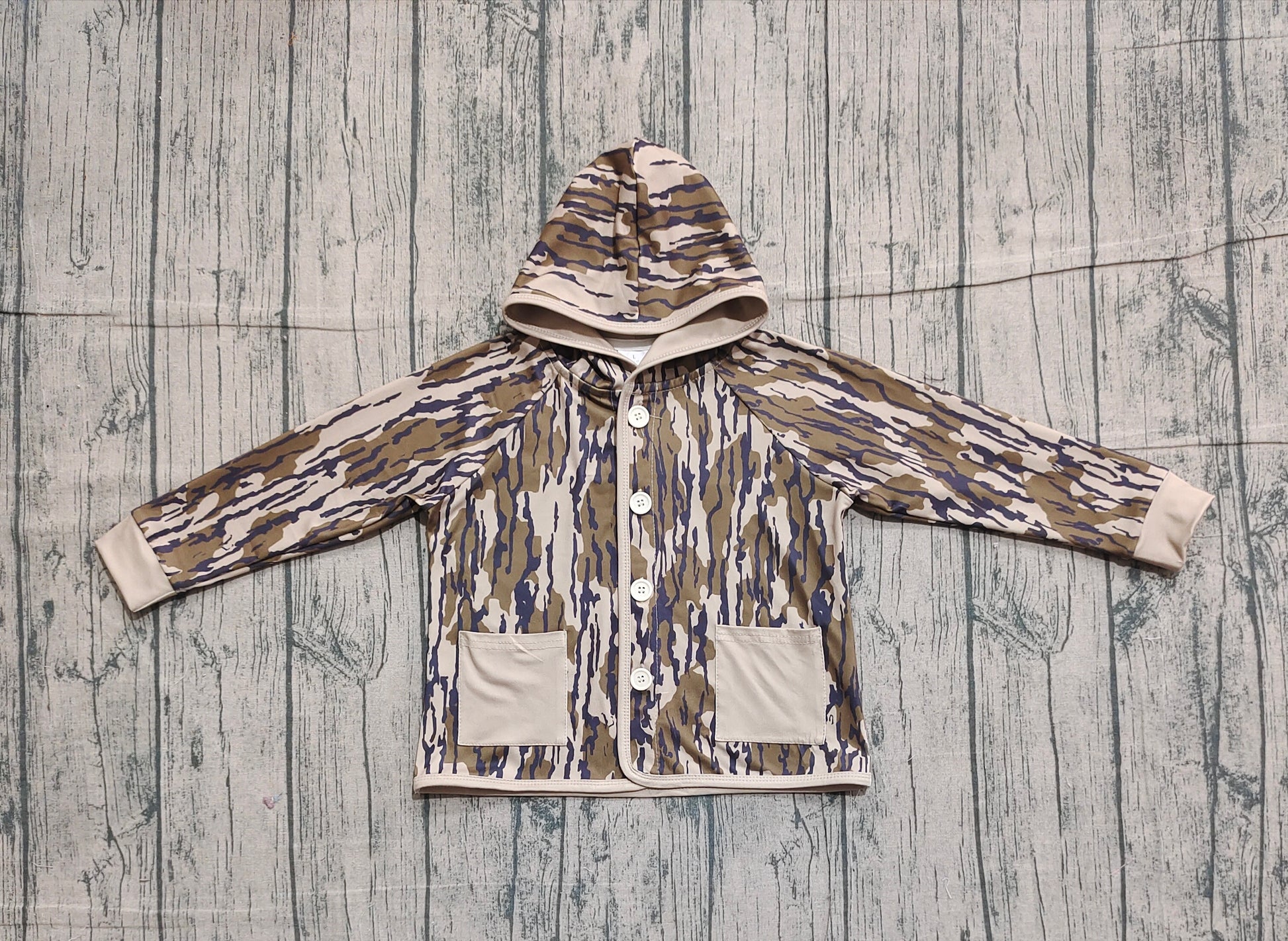NO MOQ preorder BT1441 Army Green Camouflage Pocket Hooded Long Sleeve Boys Top 202511