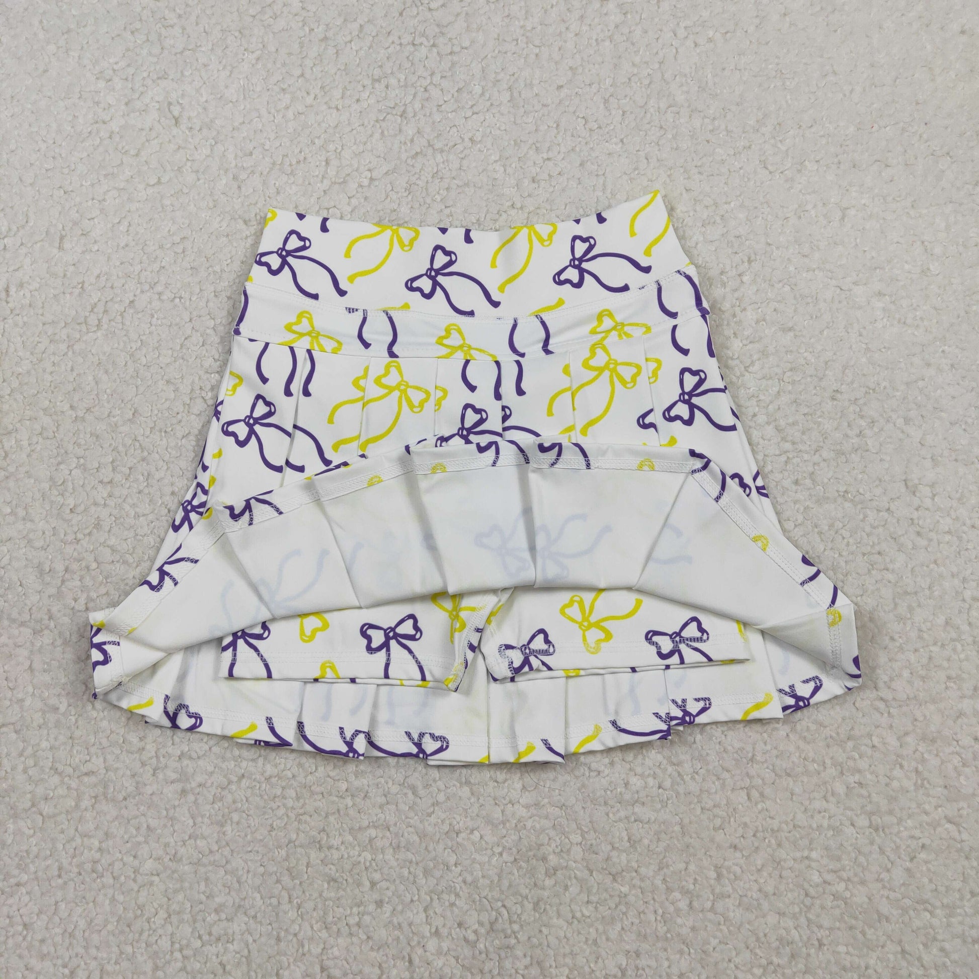 GLK0212 Mardi Gras Yellow Purple Bows White Girls Yoga Pleated Skirts 202601 RTS