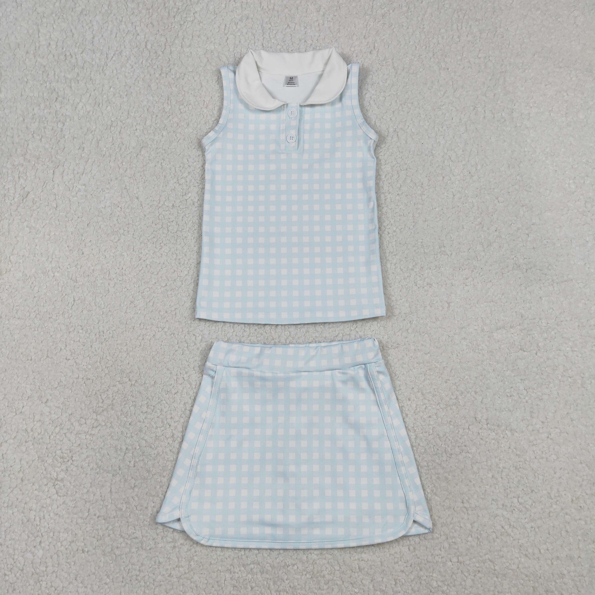 GSD3375 Light Blue Plaid Doll Collar Sleeveless Top with Skirts for Girls Yoga Sets 202601 RTS