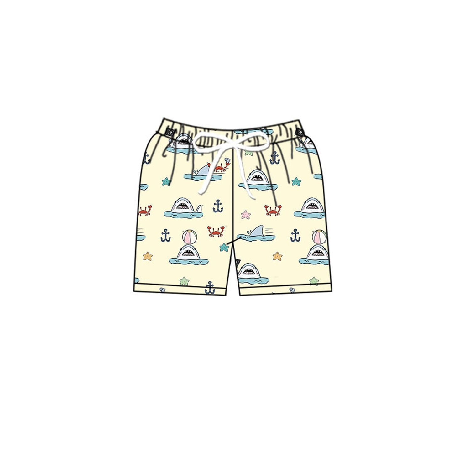 MOQ 5 Preorder S0584 Crab Starfish Anchor Shark Yellow Shorts Boys Swimming Trunks 202510