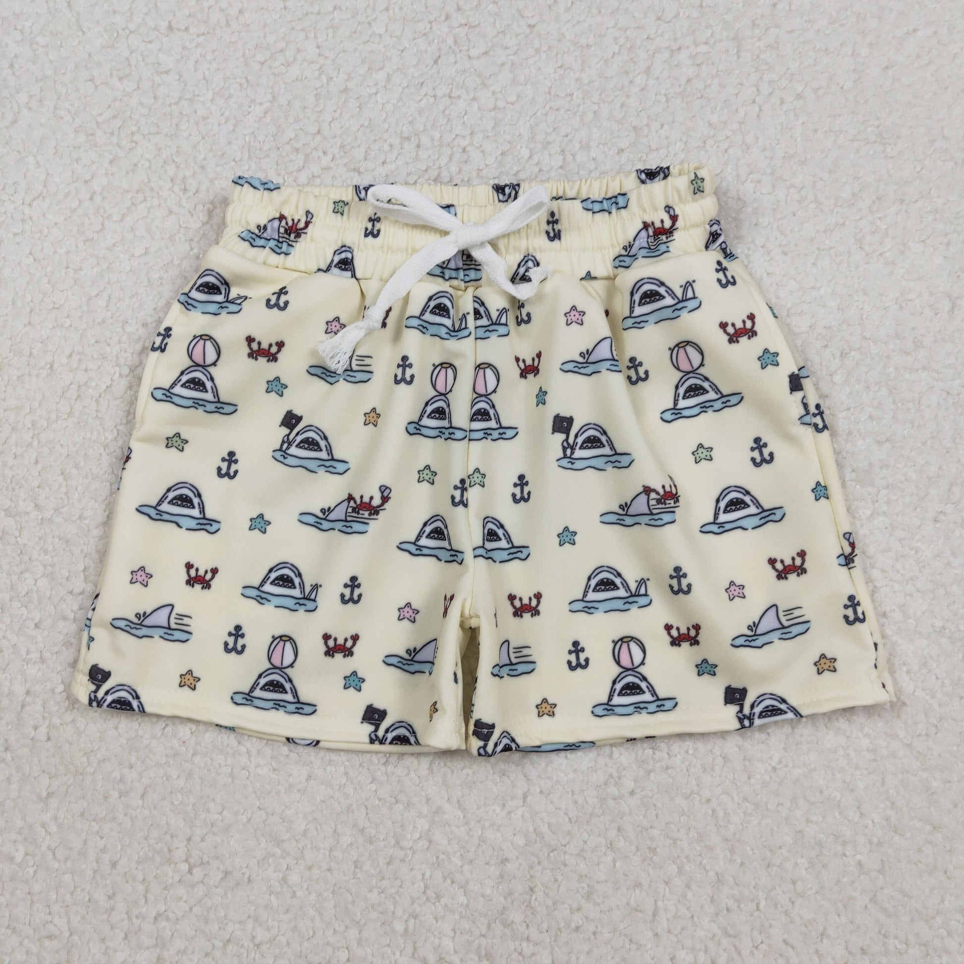 S0584 Crab Starfish Anchor Shark Yellow Shorts Boys Swimming Trunks 202511 RTS