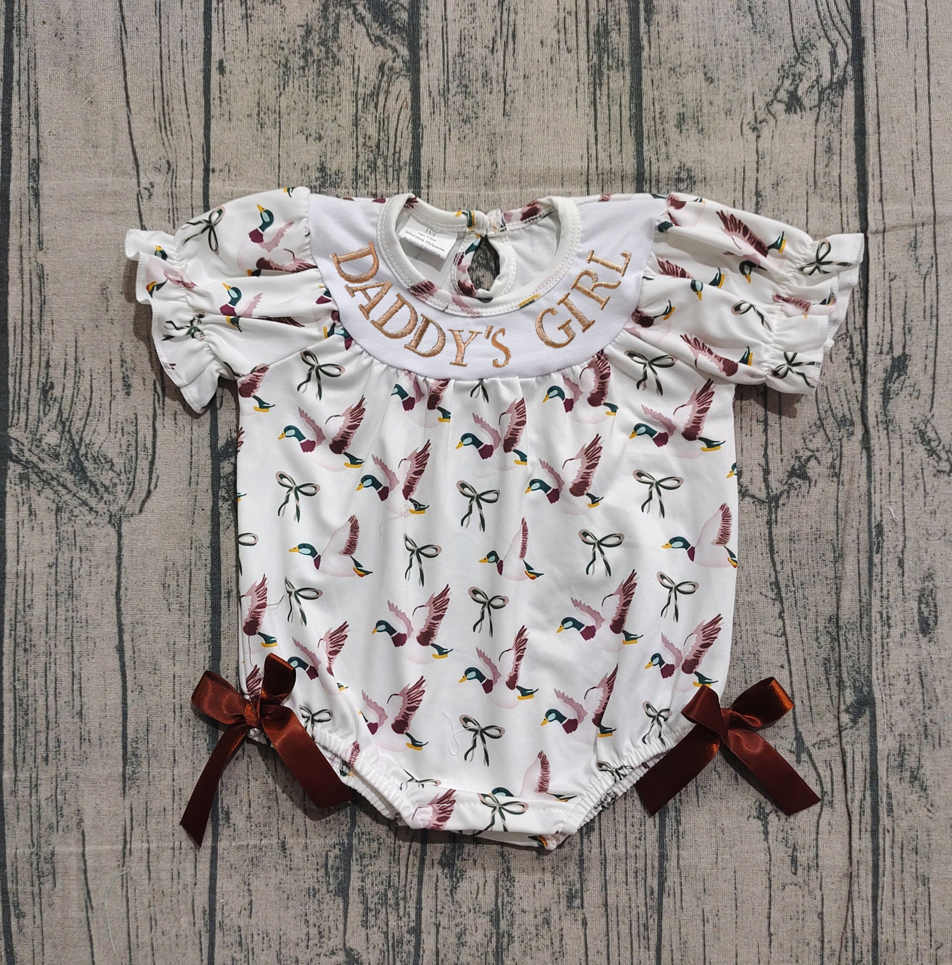 NO MOQ Preorder SR3346 Smocked Embroidered Daddy's Girl Bows Ducks Short Sleeve Girls Bubble Romper 202511