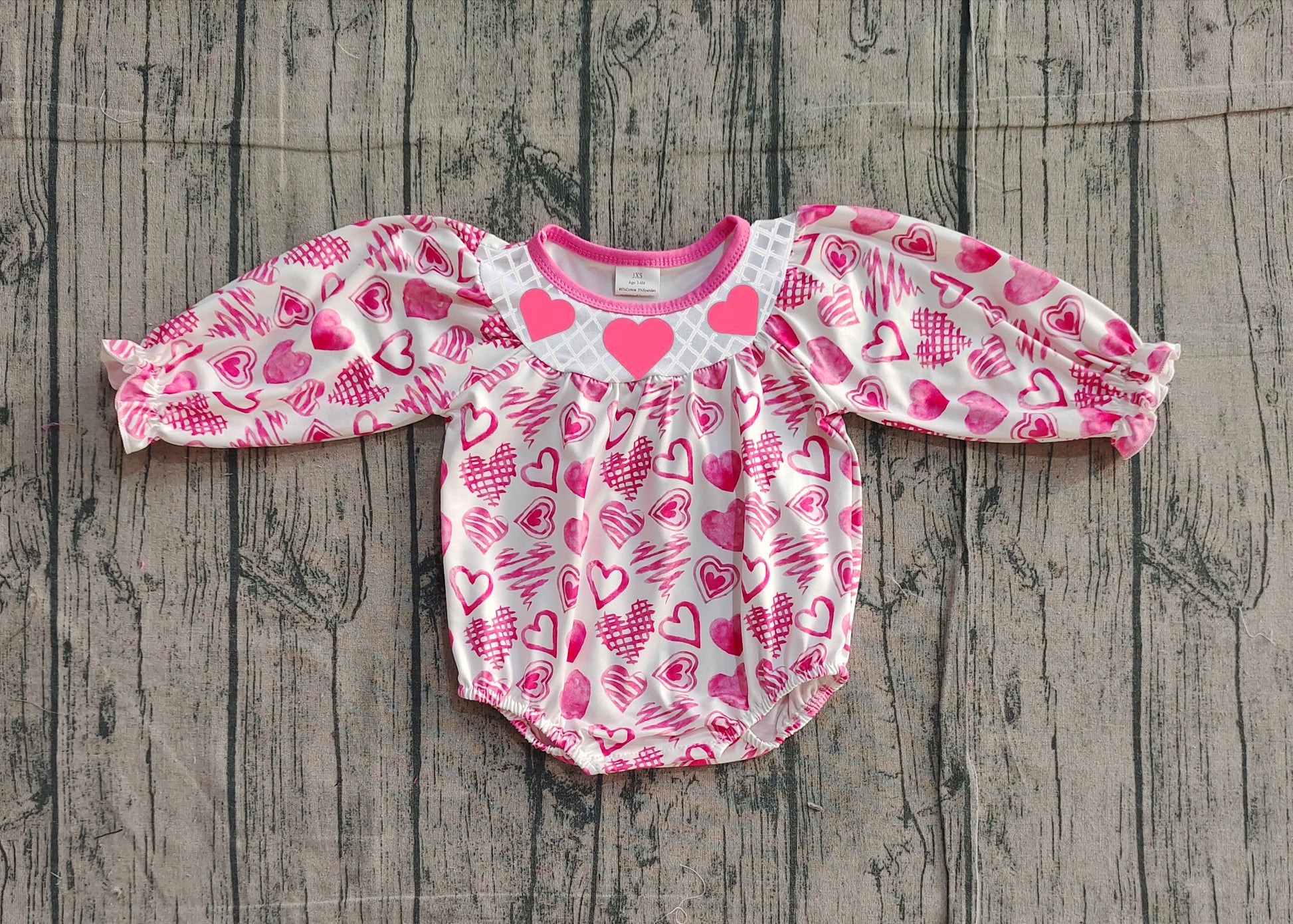 NO MOQ Preorder LR2767 Embroidered Valentine's Day Love Pink White Long-Sleeved Girls Bubble Romper 202511