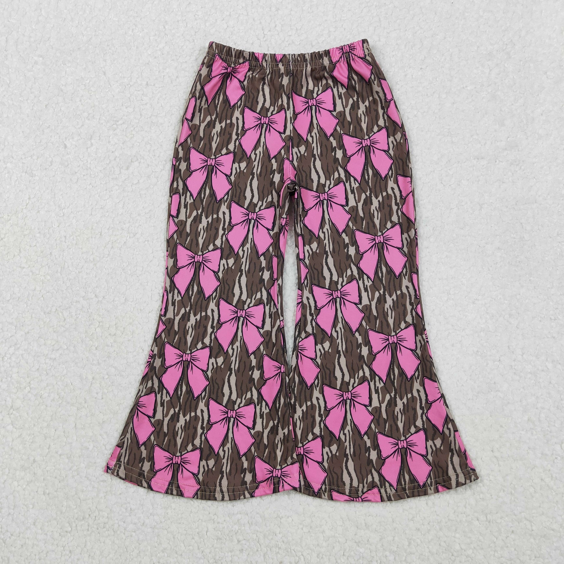 P0896 Valentine’s Day Bows Camouflage Army Green Girls Bell Bottom Pants 202511 RTS