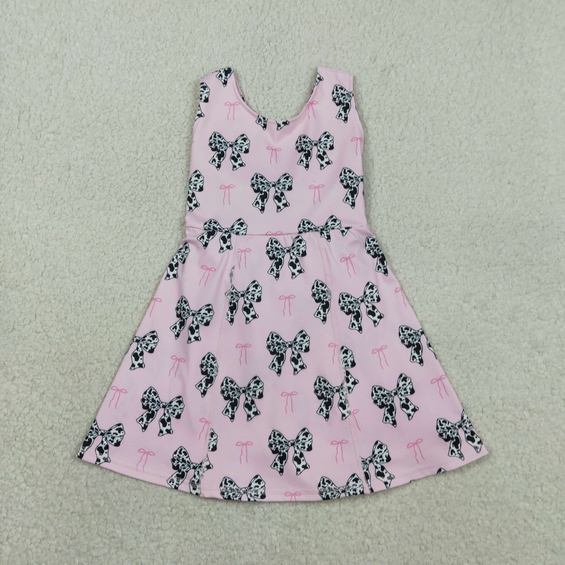 NEW GSD1853 Cow Print Bows Pink Sleeveless Yoga Dresses for Girls 202601 RTS