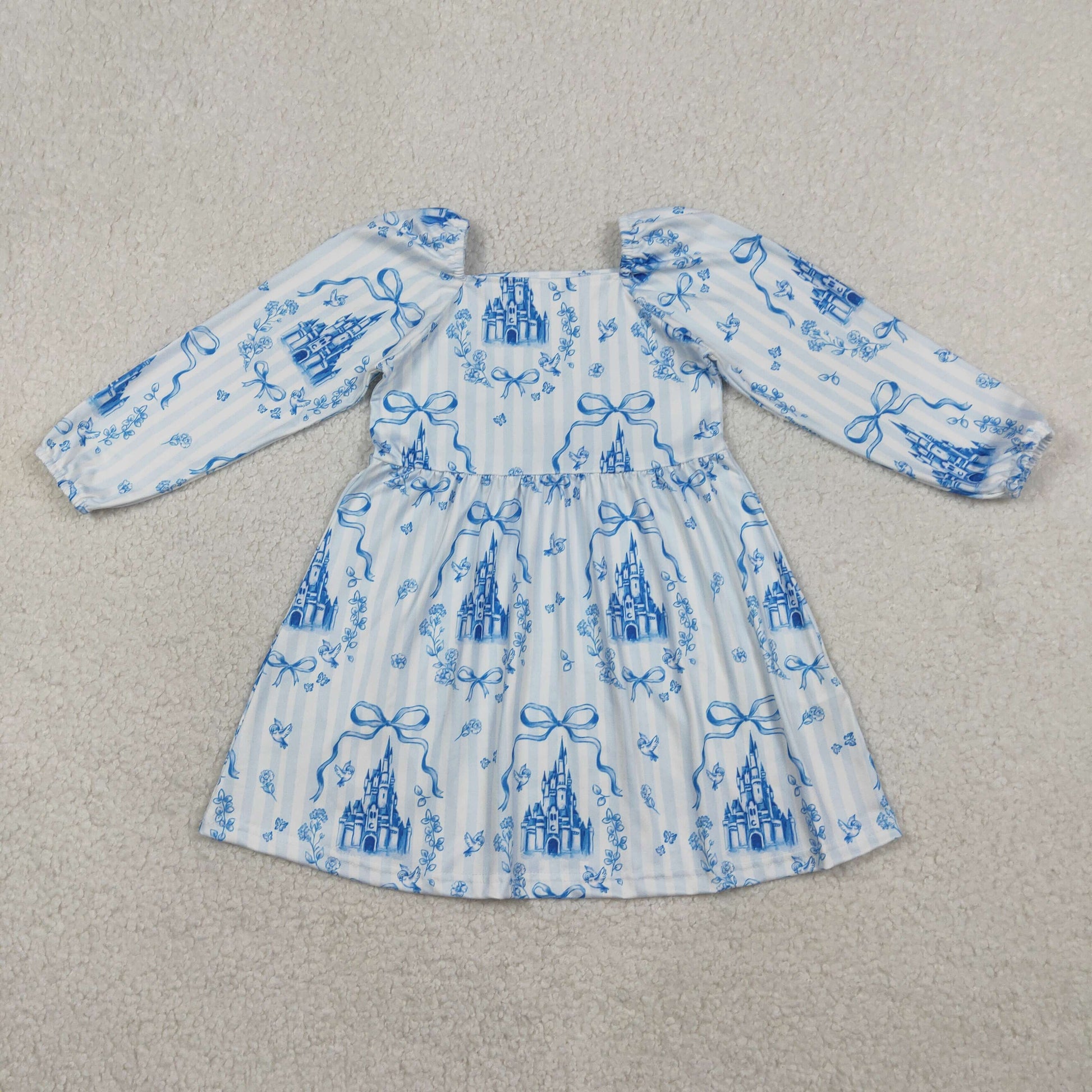 GLD1567 Bow Castle Blue Stripe Long Sleeve Dresses for Girls 20260119 RTS