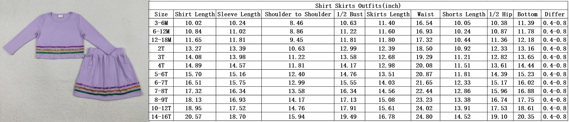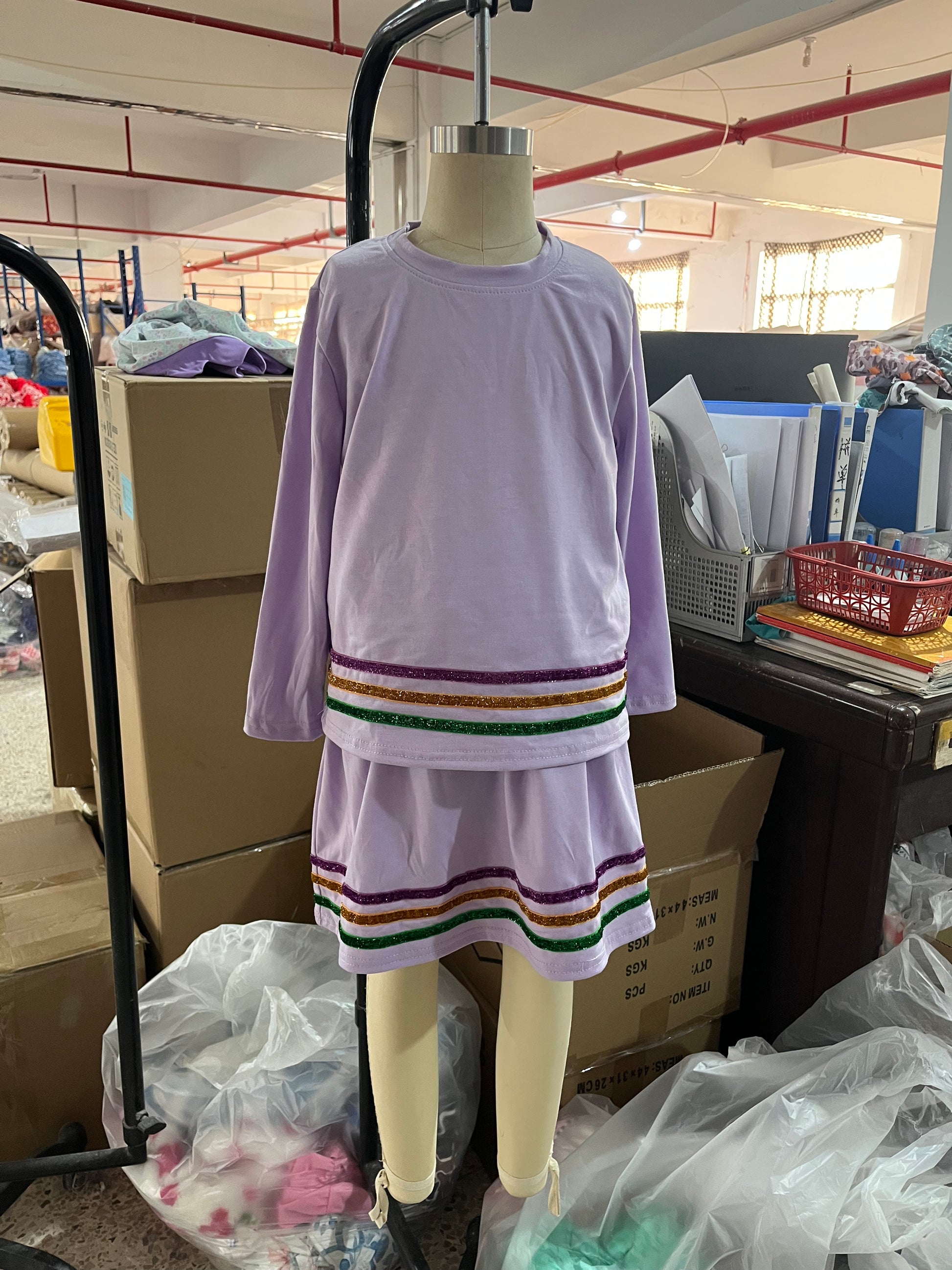 GLD1573 Mardi Gras Purple Long Sleeve Skirts Girls Sets 202601 RTS