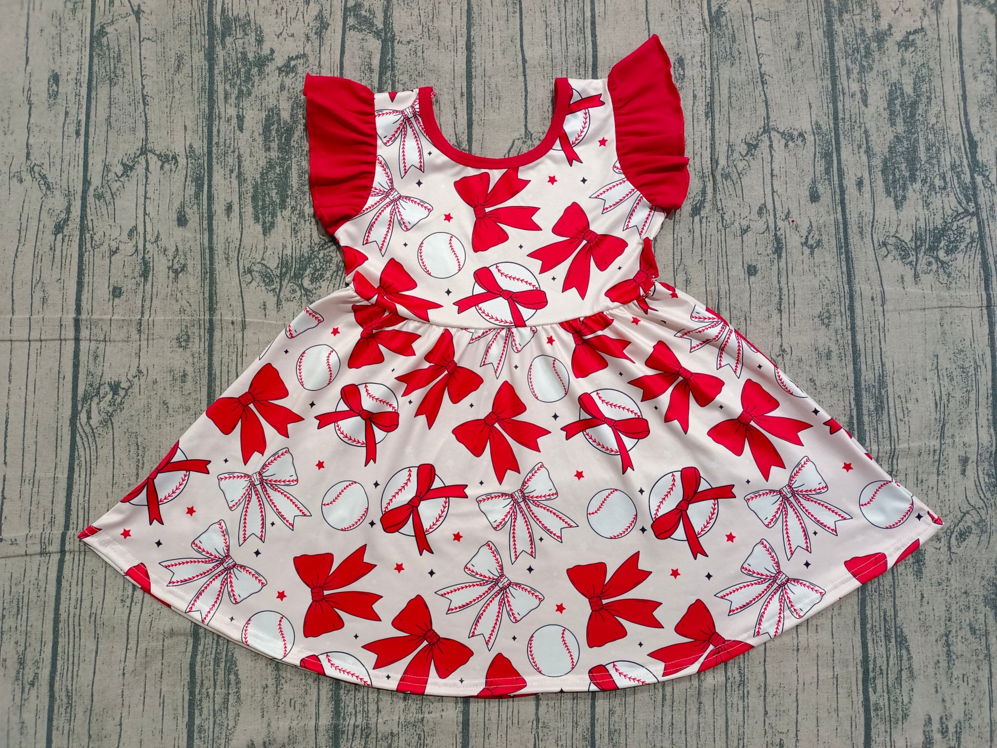 GSD3456 Baseball Bows Red Ruffle Flying Sleeve Dresses for Girls 202601