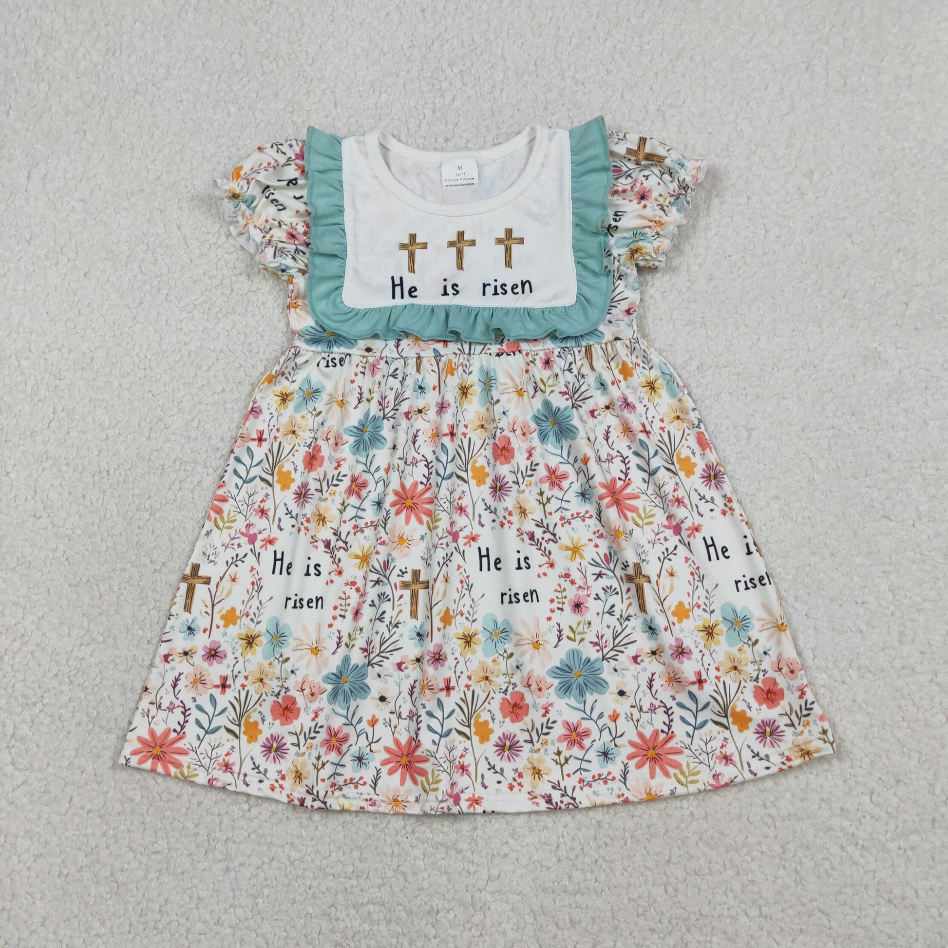 GSD3504 Easter Cross Flower Green Ruffle Short Sleeve Dresses for Girls 202601 RTS