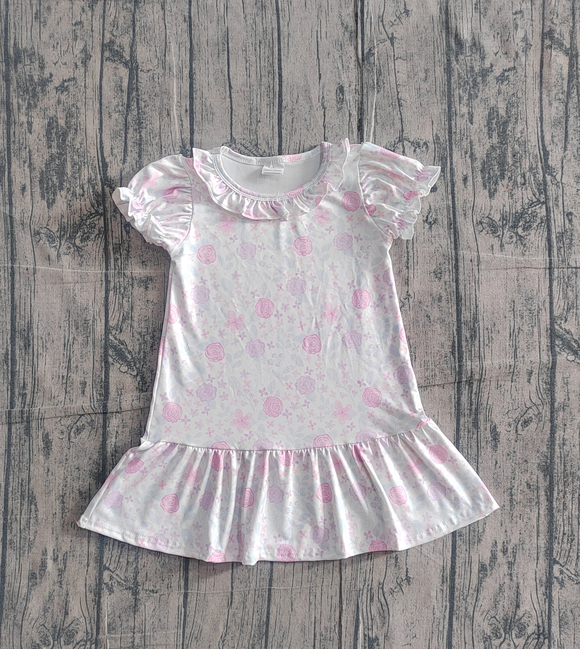 NO MOQ Preorder GSD3717 Flower Leaf Light Pink Purple Ruffle Short Sleeve Dresses for Girls 202602