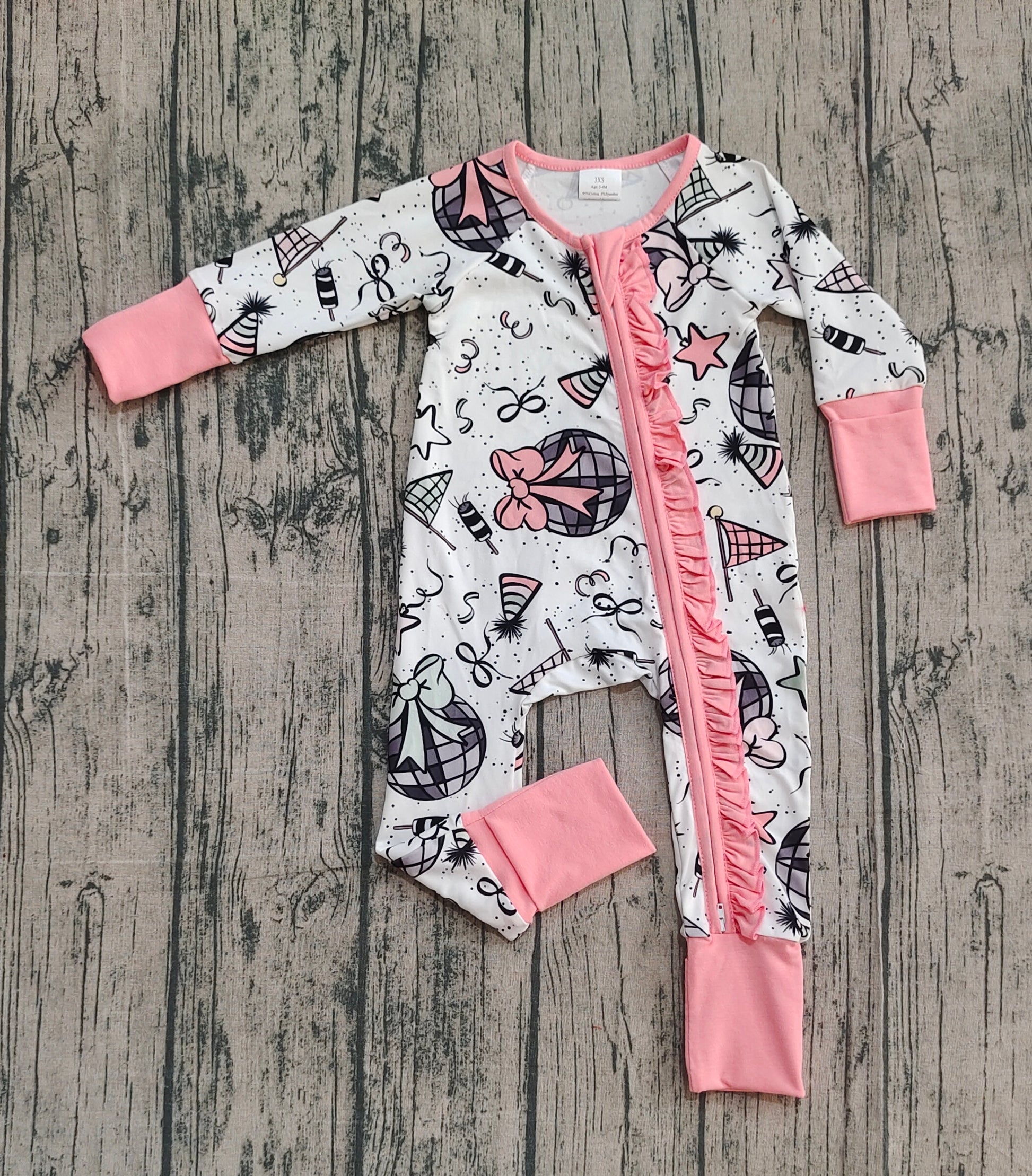 LR2571 Happy New Year Pink Ruffle Zipper Long Sleeve Girls Romper 202510 RTS