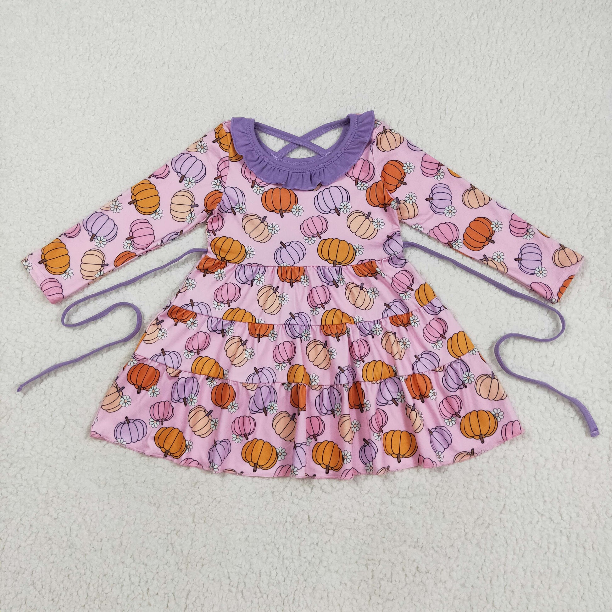 GLD1032 Pumpkin Pink Purple Ruffle Long Sleeve Girls Dresses Boutique 202508 RTS