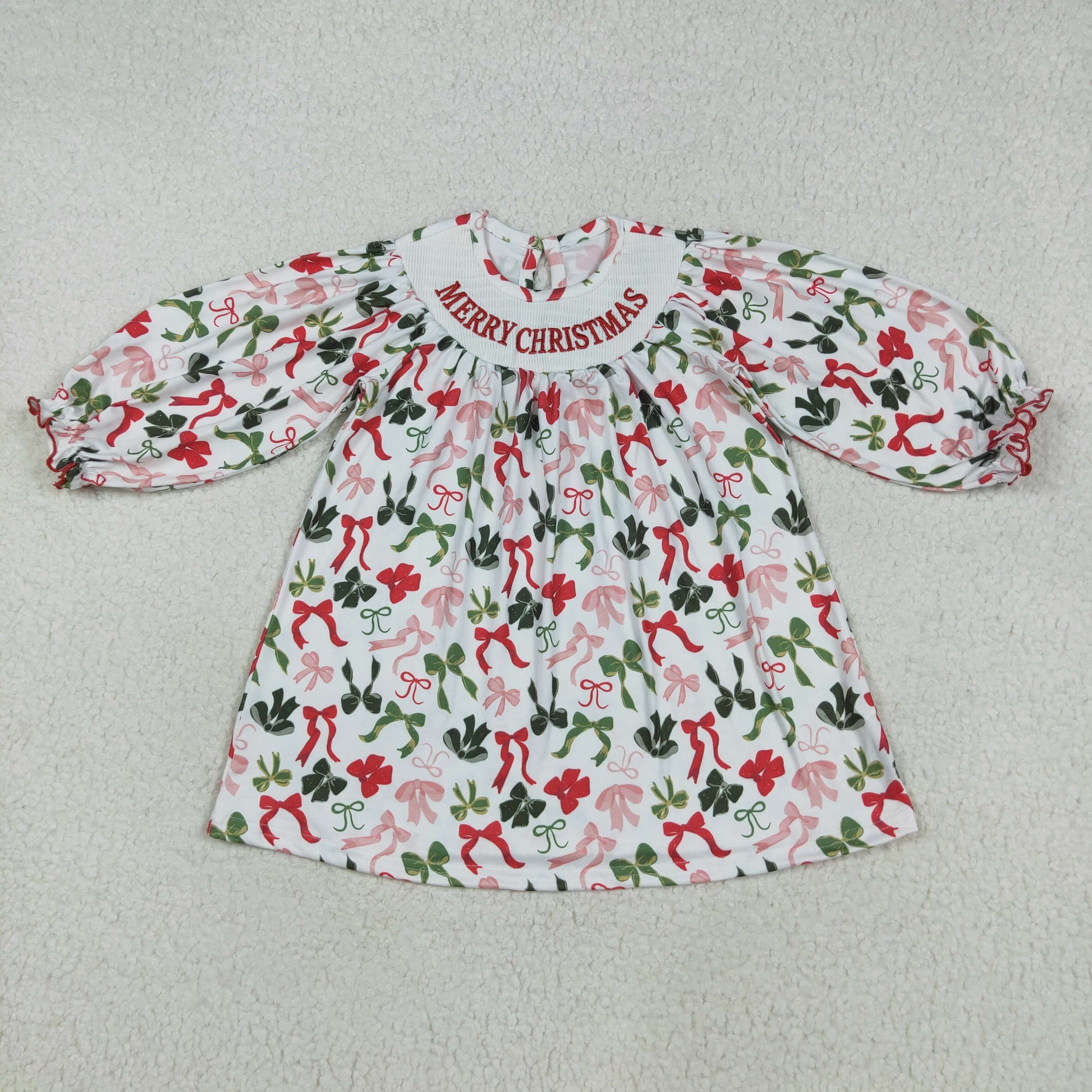 GLD1094 Girls Boutique Smocked Merry Christmas Long Sleeves Dress 202507 RTS