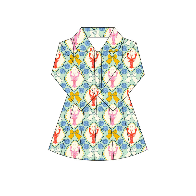 preorder GLD1102 Girls Yoga Dress Crayfish Bows Stand-Up Long Sleeve Dress Shorts 202505