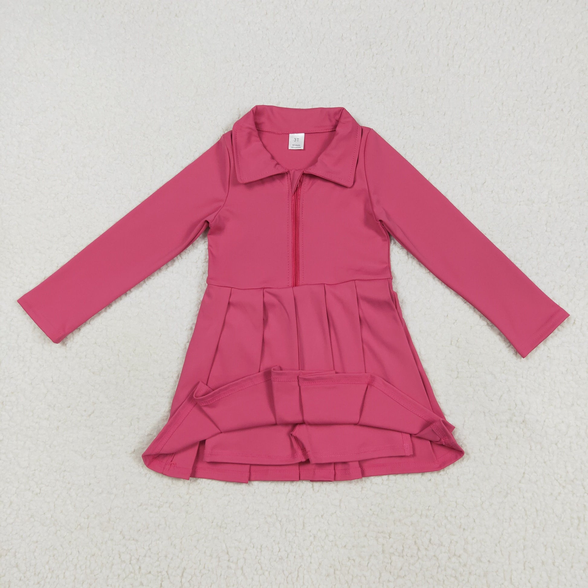 GLD1146 Girls Yoga Dress Rose Red Long Sleeve Dress Shorts 202507 RTS