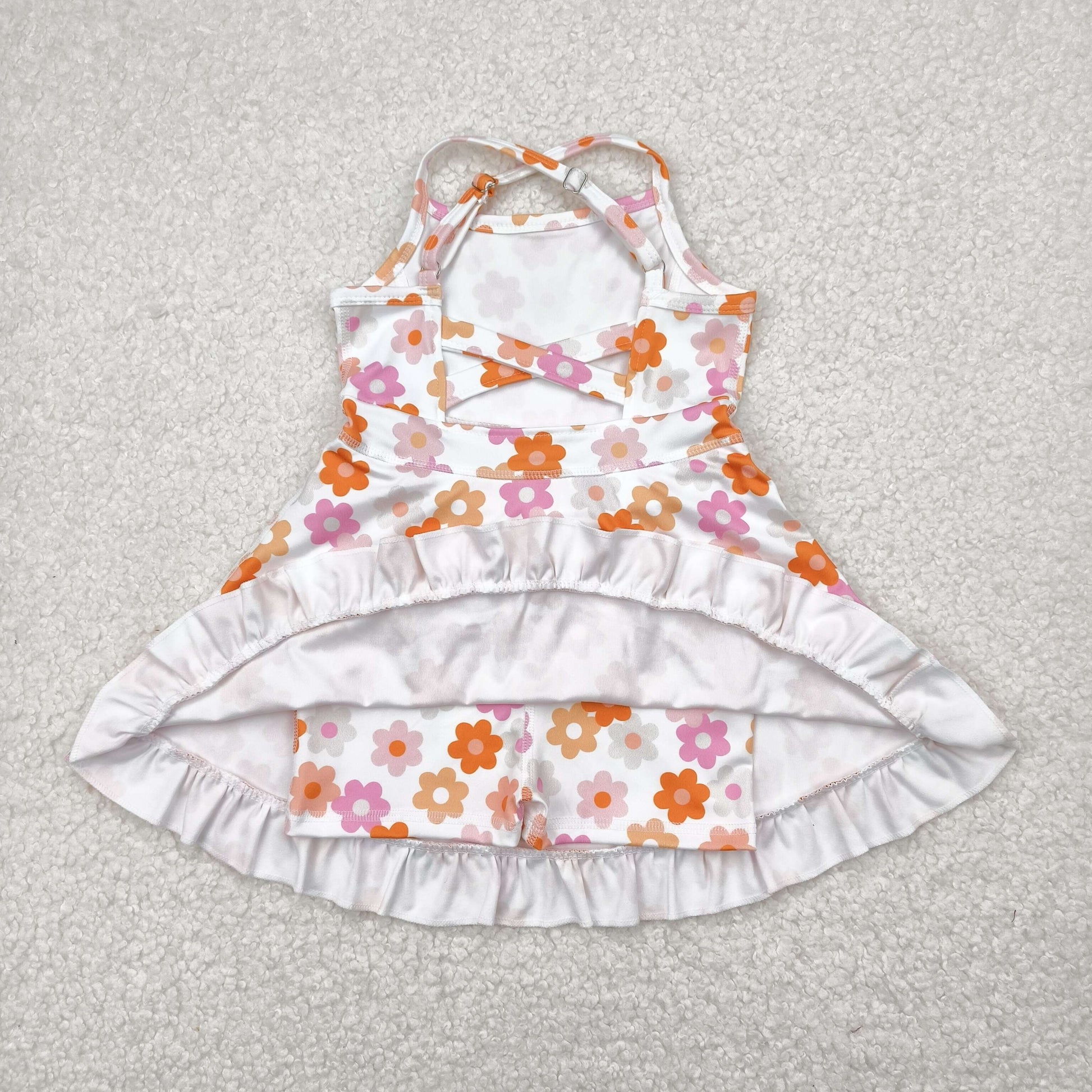 GSD2282 Orange Pink Flower White Ruffle Sleeveless Halter Yoga Dress Girls Boutique Clothes 202504 RTS