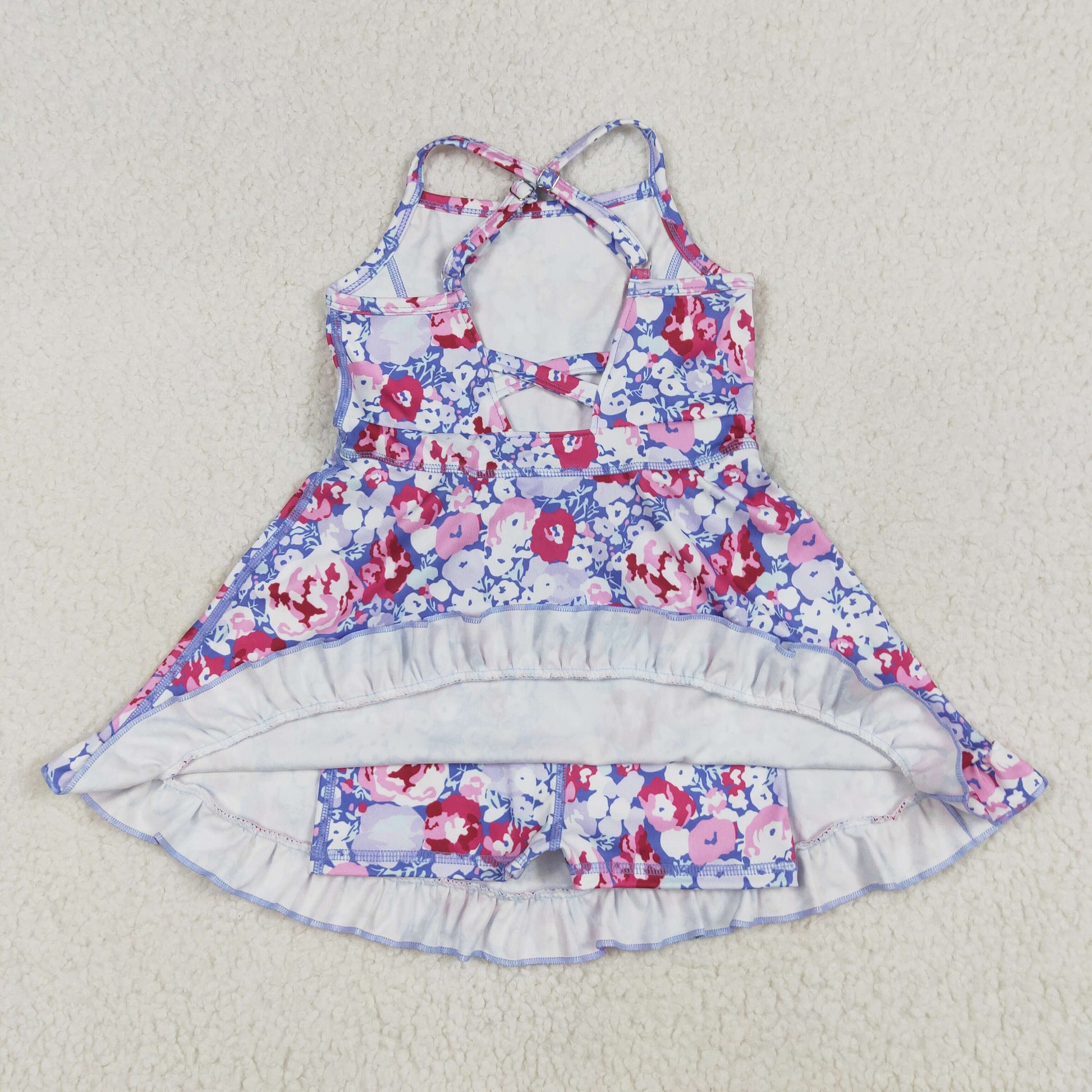 GSD2285 Pink Purple Flower Ruffle Sleeveless Halter Yoga Dress Girls Boutique Clothes 202506 RTS