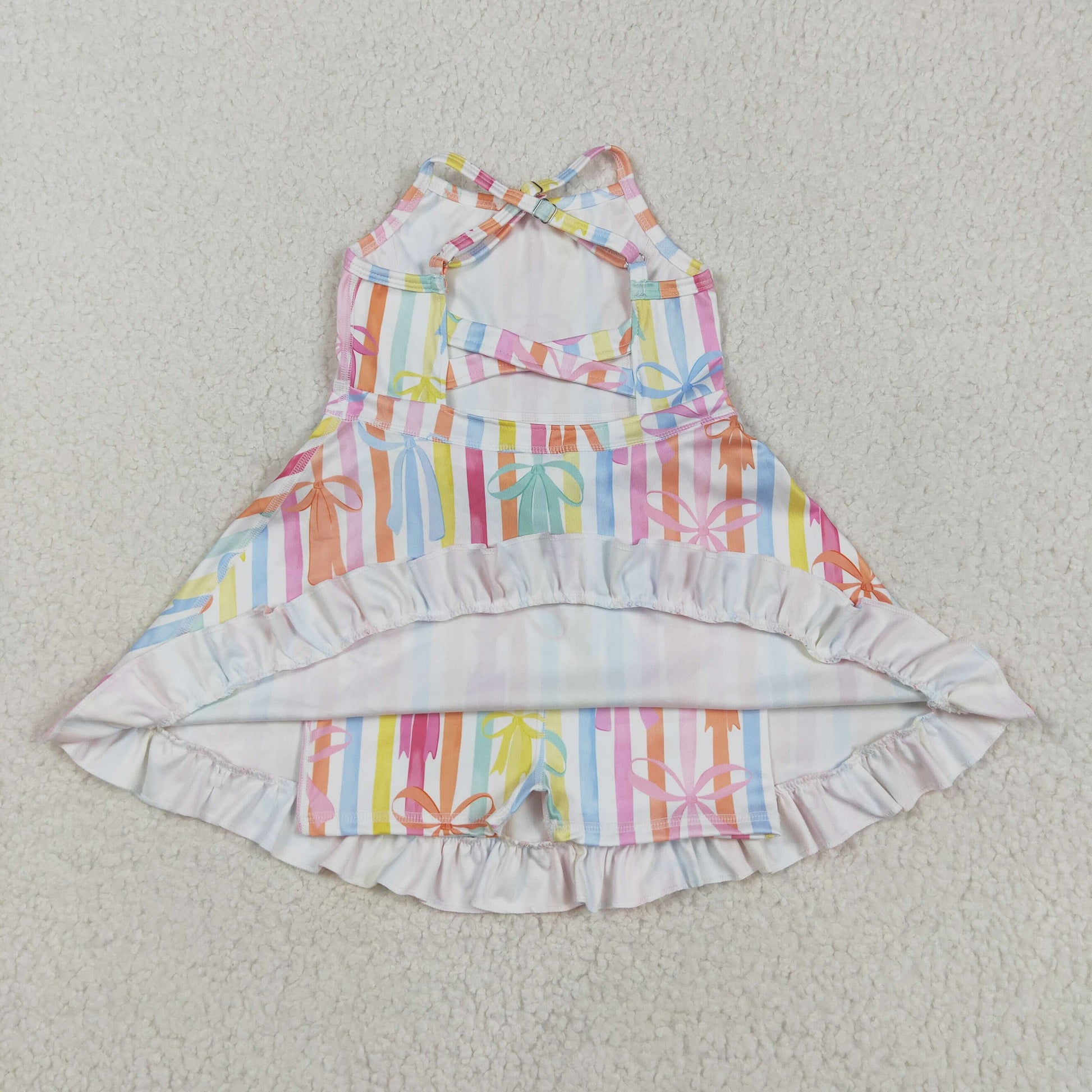 GSD2288 Colored Stripe Bows Ruffle Sleeveless Halter Yoga Dress Girls Boutique Clothes 202505 RTS