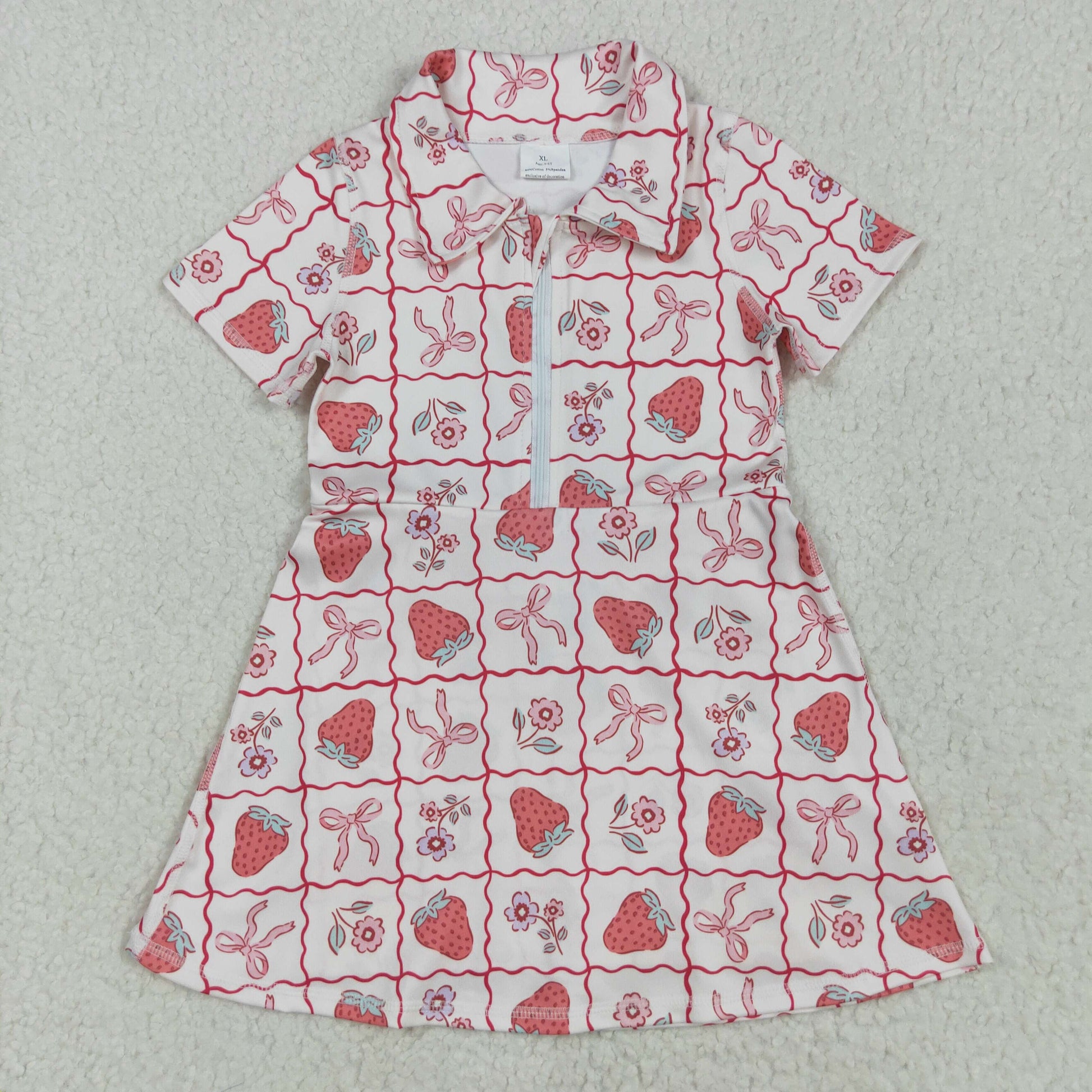 GSD2407 Beige Strawberry Bows Flower Zippy Dress Boutique Yoga Girls Clothes 202505 RTS