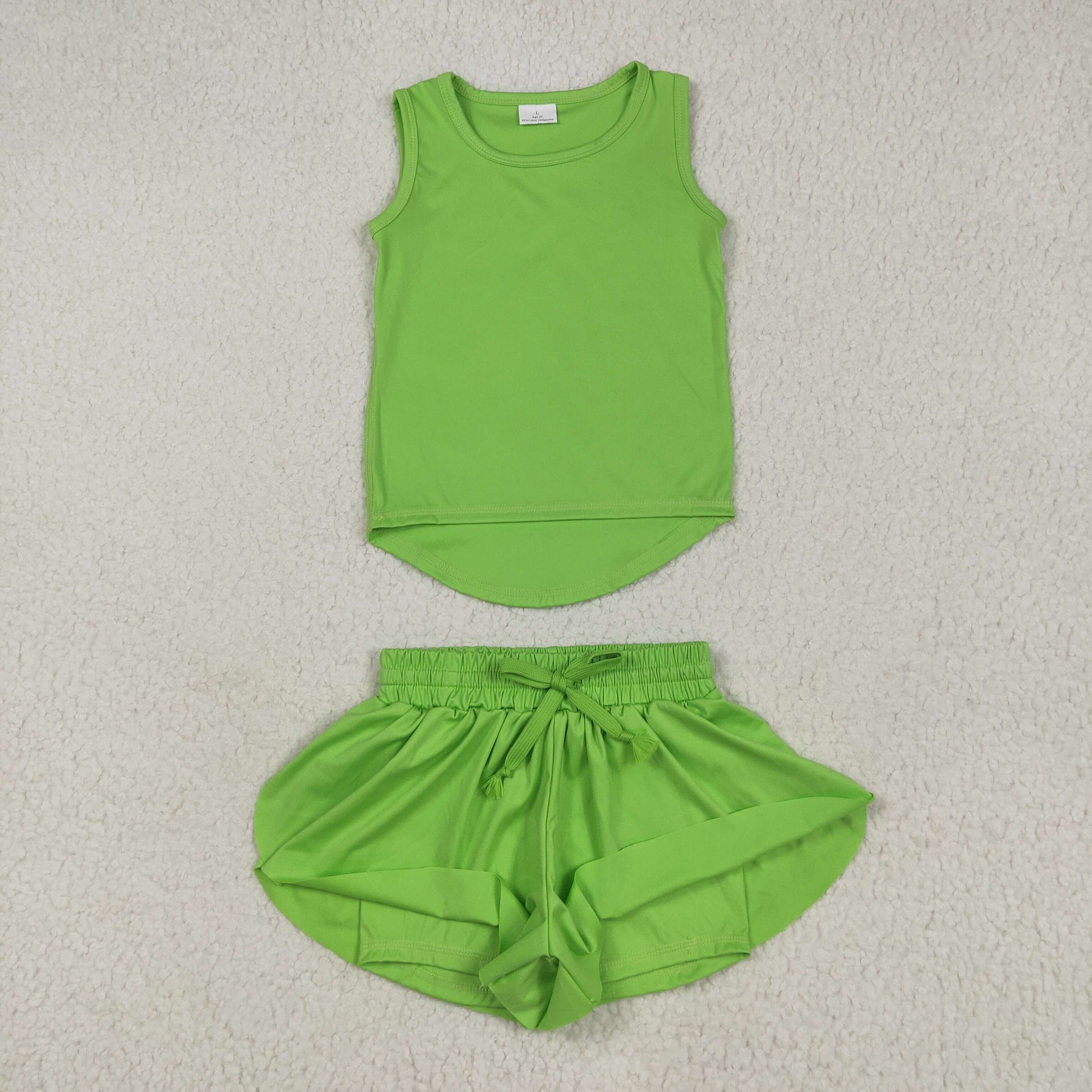 GSSO2503 Pure Green Yoga Milk Silk Sleeveless Top Shorts Set Girls Boutique Outfit 202505 RTS