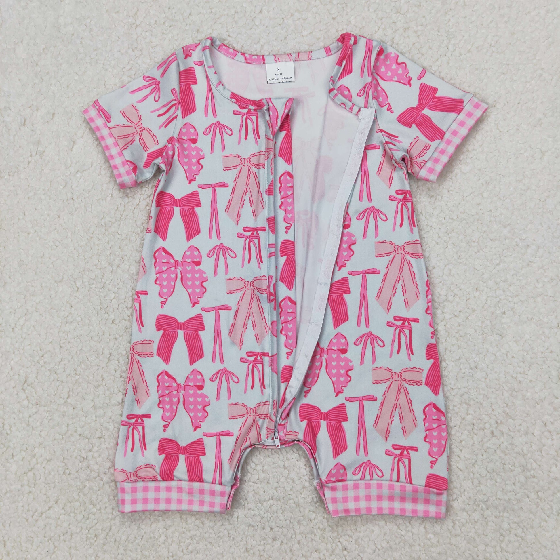 SR2771 Pink Bows Plaid Zippy Short Sleeve Romper Girls Boutique Outfits 202504 RTS