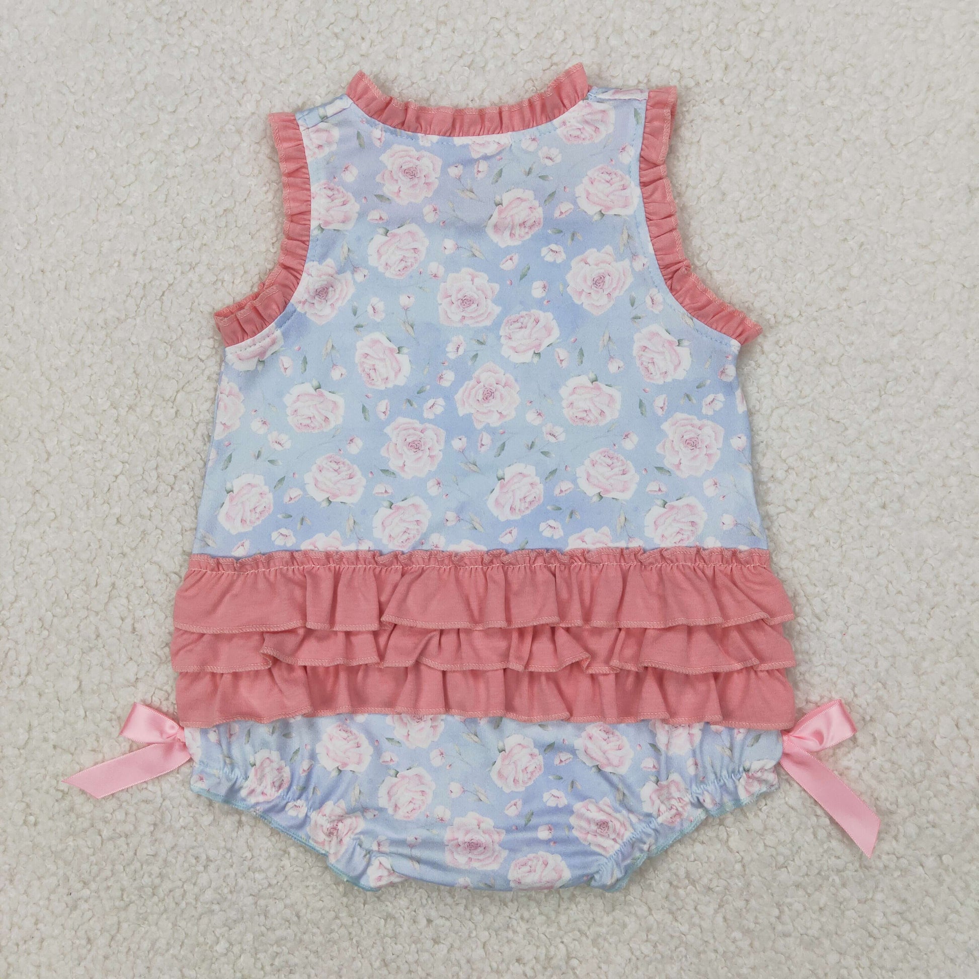 SR2911 Little Sister Pink Blue Flower Ruffle Sleeveless Romper Girls Boutique Outfits 202504 RTS