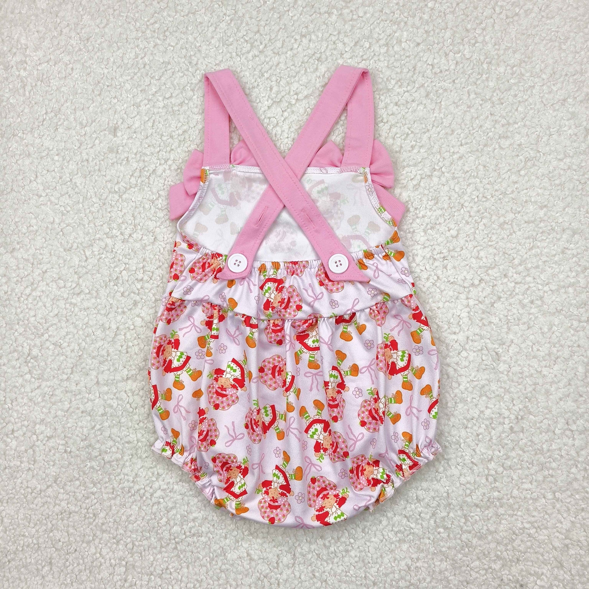 preorder SR2933 Pink Bow Strawberry Princess Flower Sleeveless Romper Girls Boutique Outfits 202503