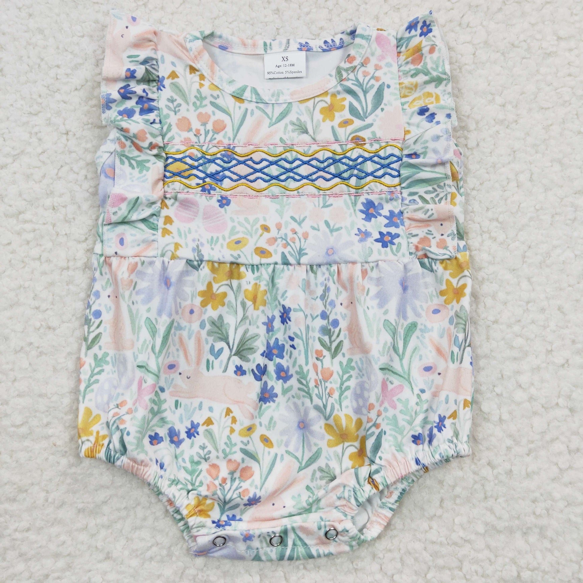 SR0262 Easter Rabbit Floral Girls Short Sleeve Romper