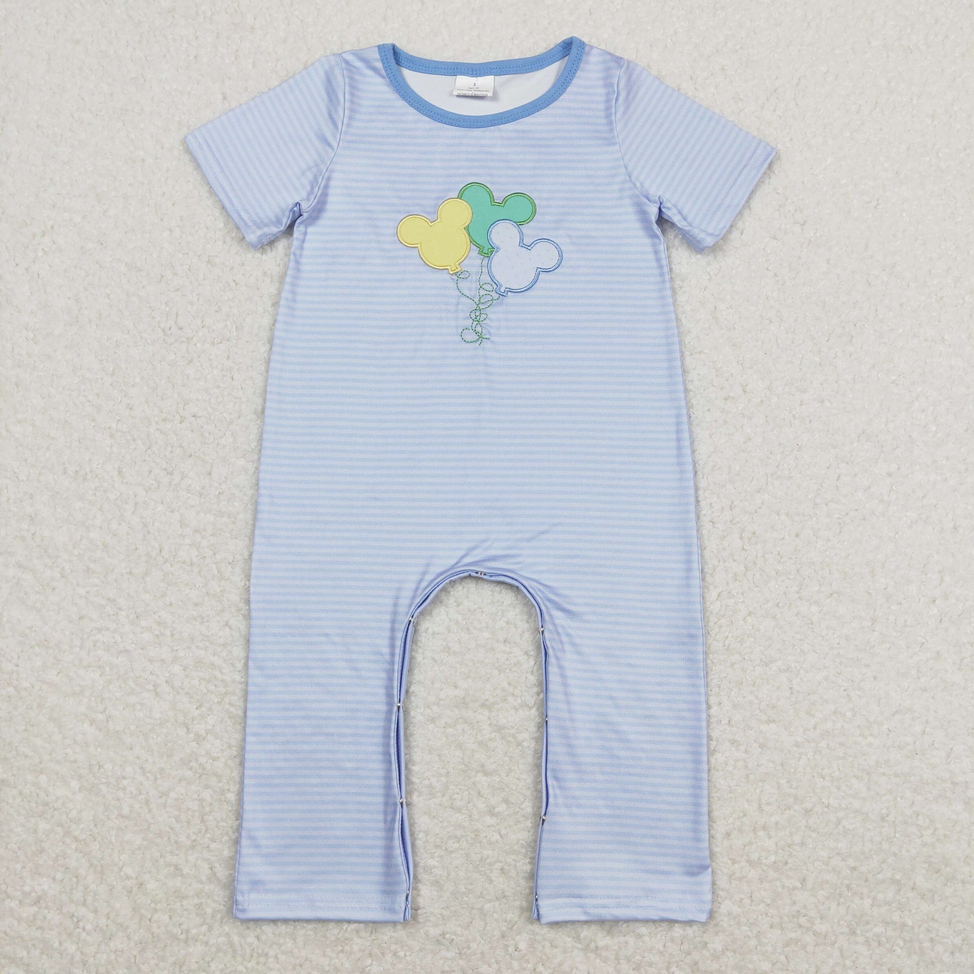 SR0612 Embroidered Mickey Balloon Blue Striped Short Sleeve Boys Romper RTS 202508