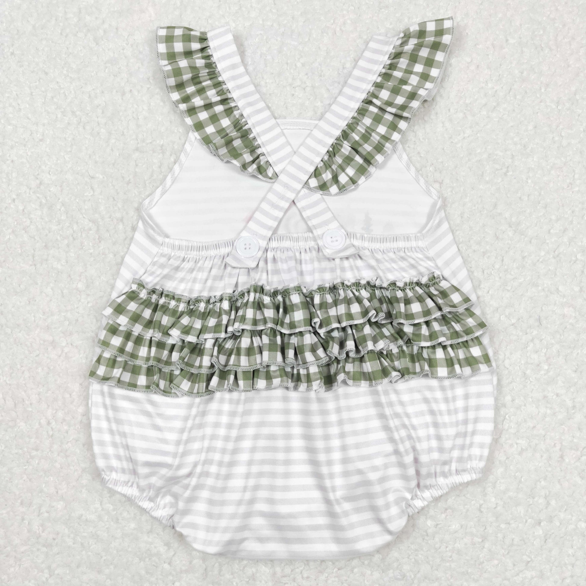 SR0658 Puppy Stripe Green Stripe Ruffles Girls Flying Sleeve Bubble Romper RTS 202508