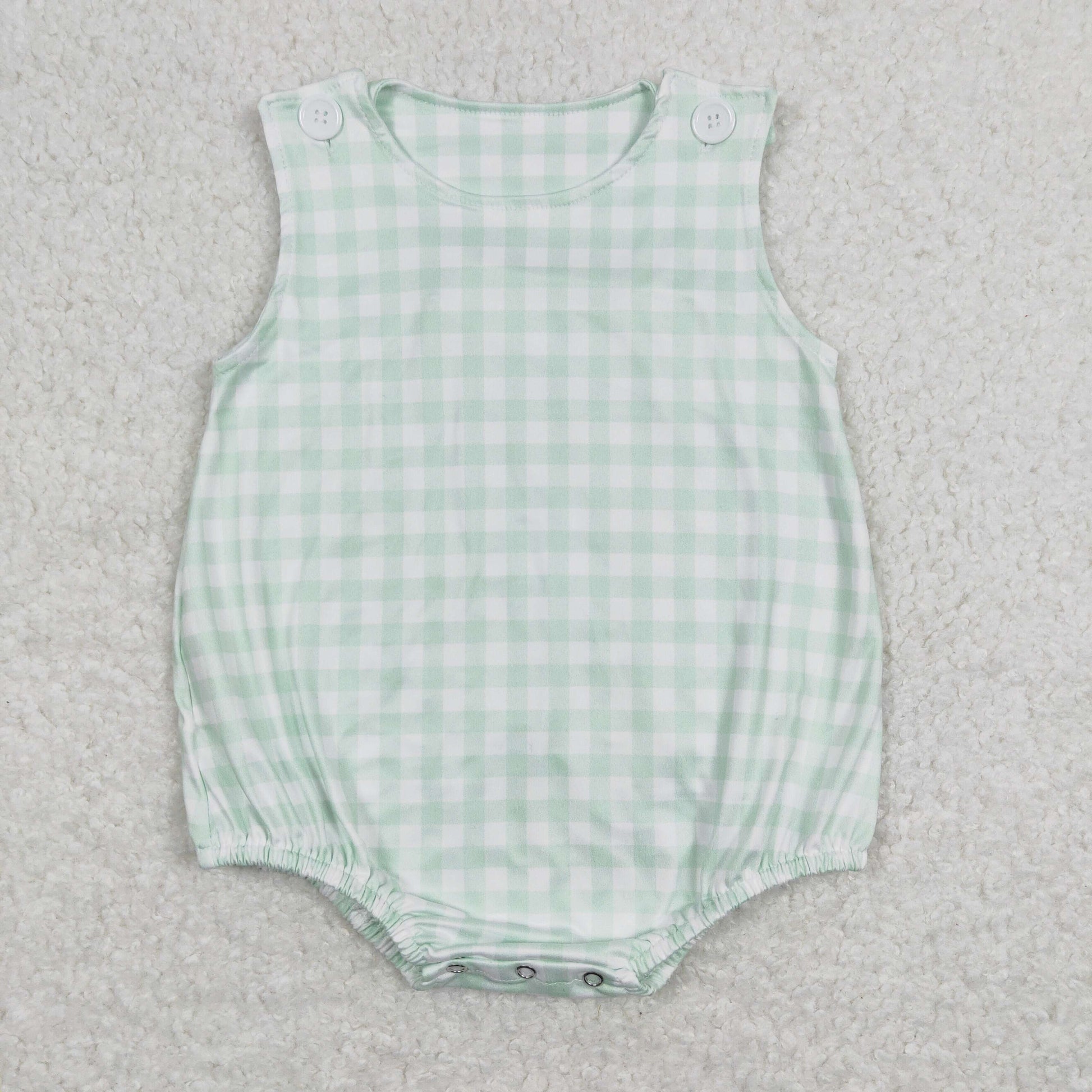 SR0892 Pea Green Plaid Sleeveless Romper Boys Boutique Outfit summer clothes RTS 202501
