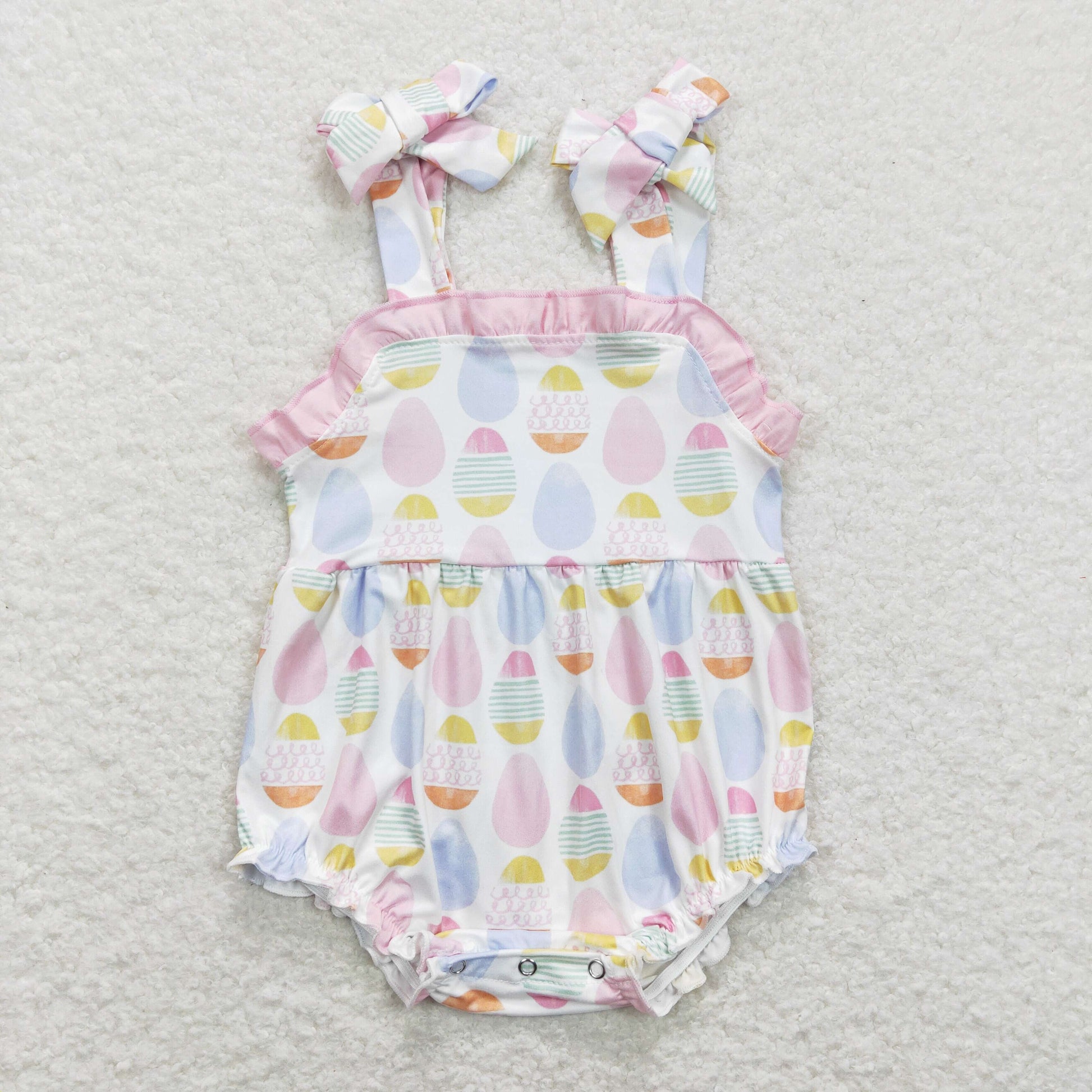 SR0900 Eater Eggs Pink Ruffle Halter Girls Bubble Romper RTS 202507