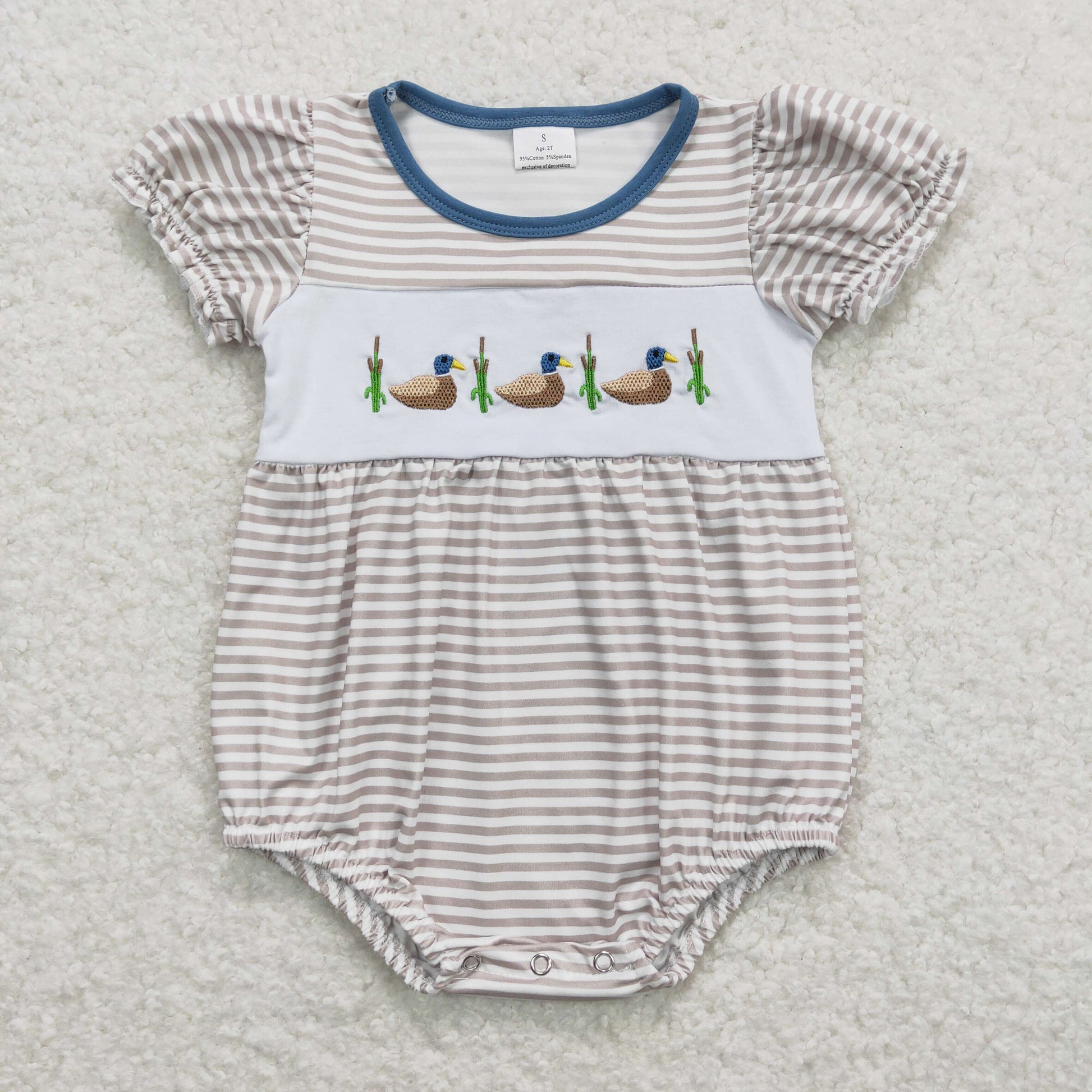 SR0987 Embroidered Ducks Stripe Short Sleeve Girls Bubble Rompers RTS 202508