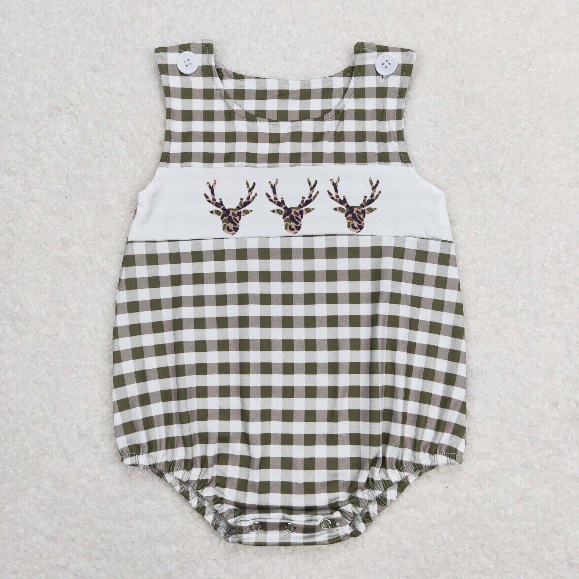 SR1167 Deer Hunting Army Green Plaid Sleeveless Boys Bubble Romper RTS 202508