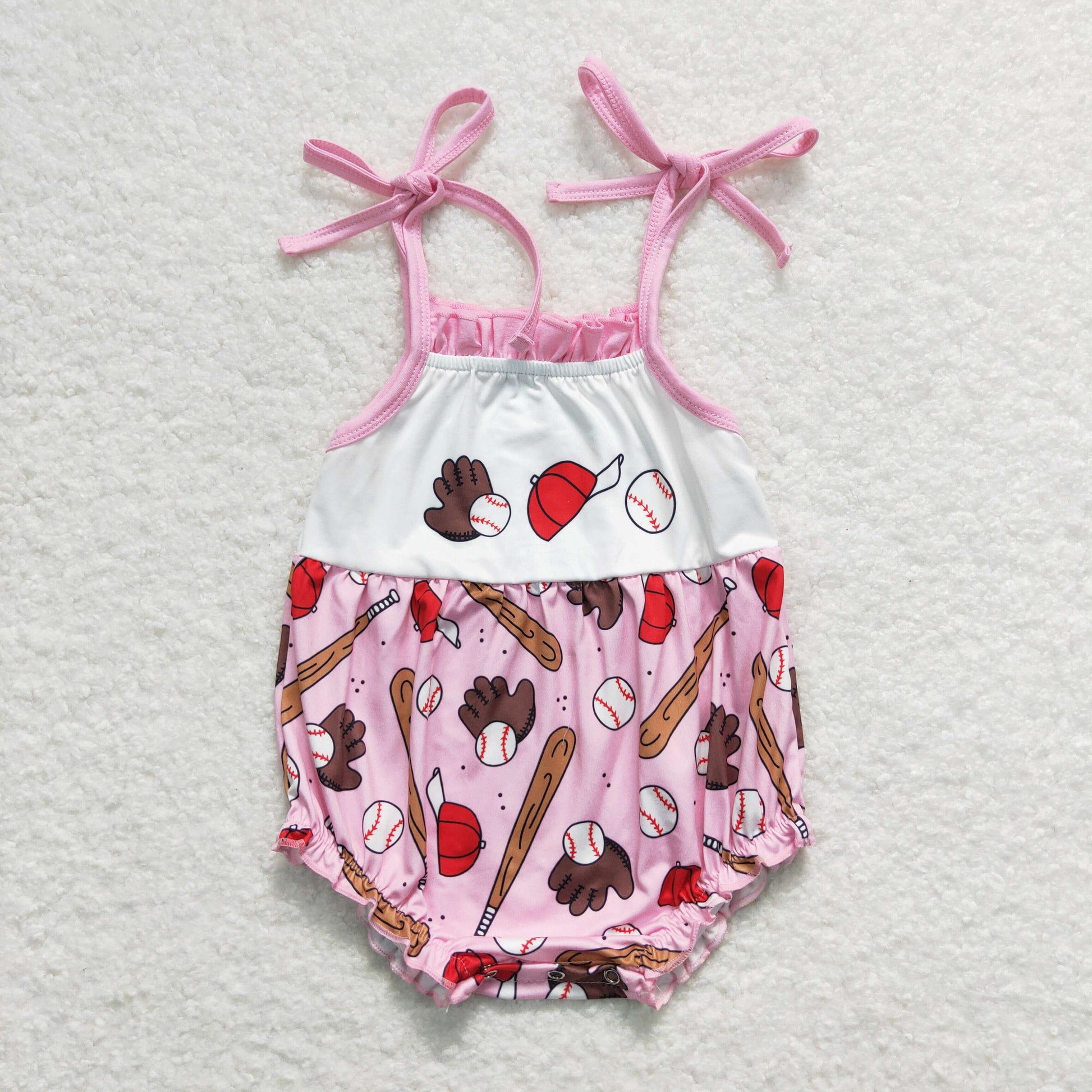 SR1234 Baseball Cap Pink Sleeveless Girl Bubble Romper RTS 202508
