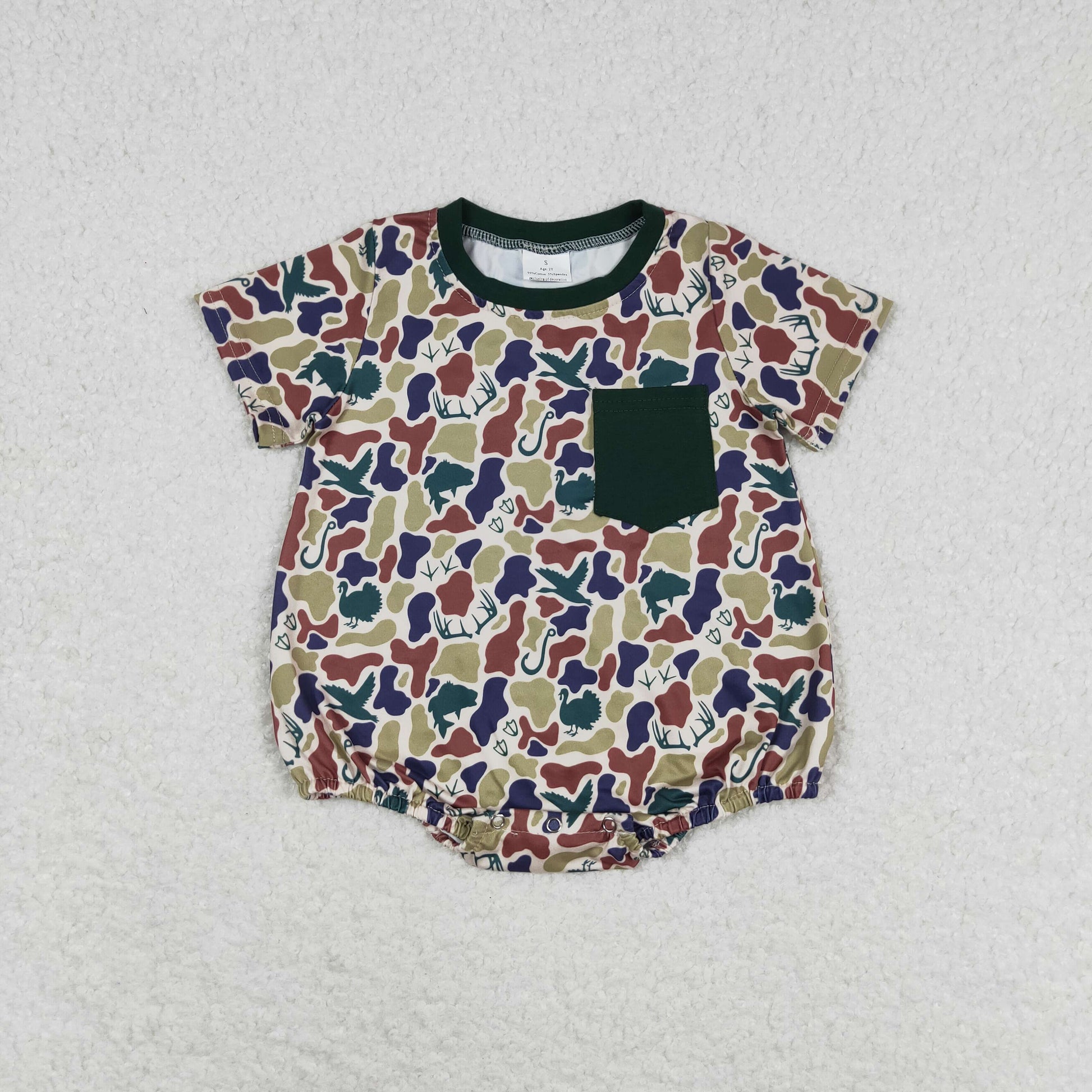 SR1659 Duck Hunting Brown Green Short Sleeve Boys Bubble Romper RTS 202509