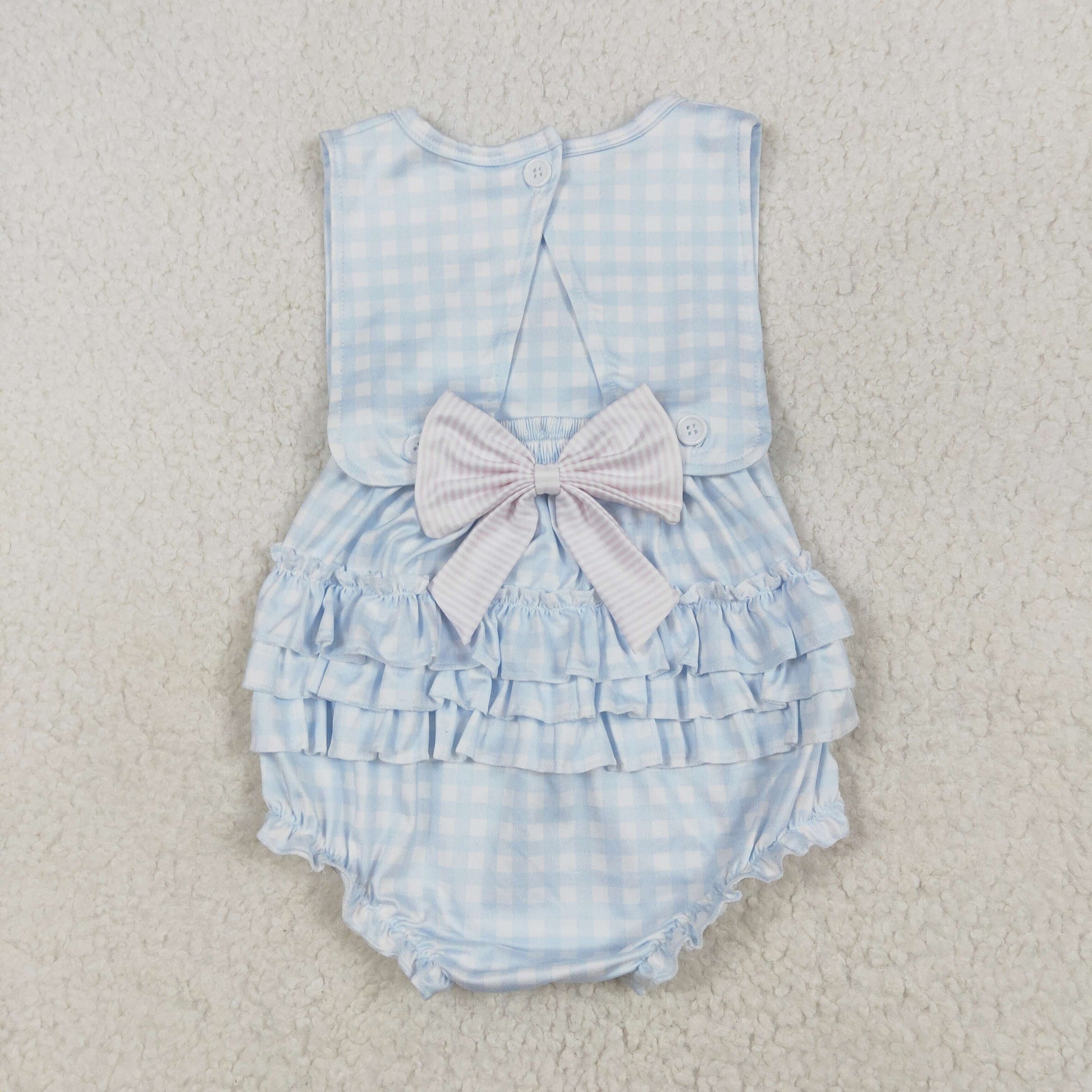SR2203 Embroidery Pink Bow Blue Plaid Sleeveless Romper Baby Girl boutique Outfit RTS 202501